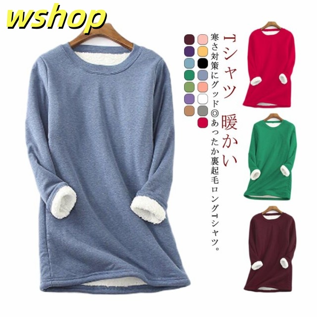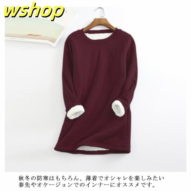 新登場 売上急増中 レディース 大きいサイズ 秋冬 カジュアル 厚手 ロンT 暖かい あったか 長袖 通勤 裏起毛 トレーナー 】Tシャツ 裏ボア 通学 シンプル 送料無料 防寒 クールネック スウェット 無地 トップス プルオーバー 【wshop 在庫わずか