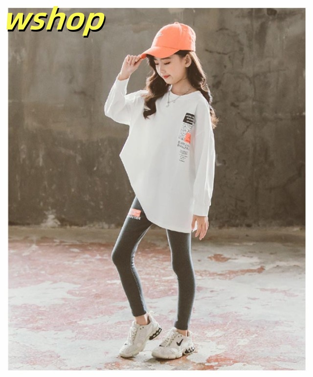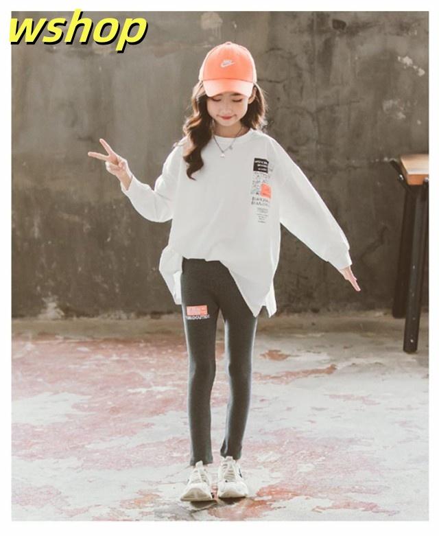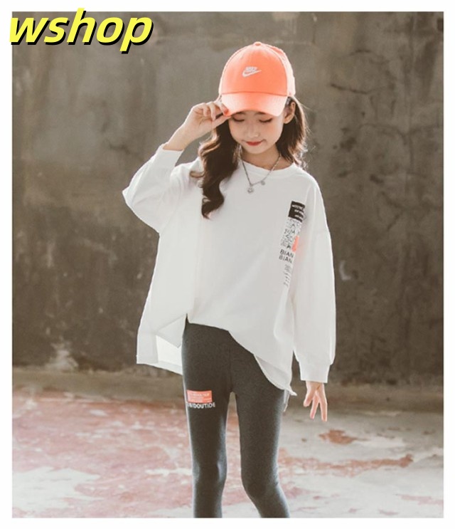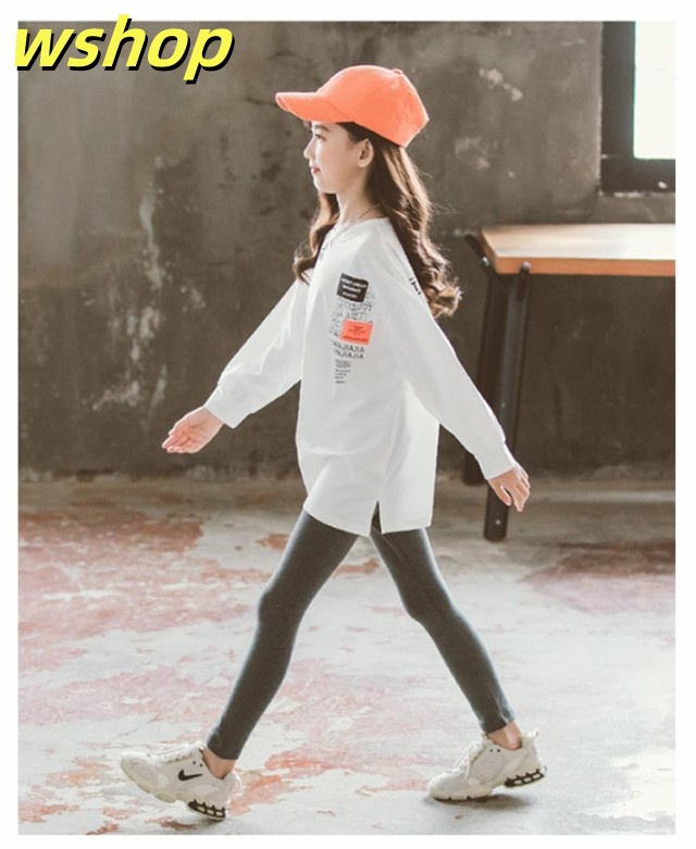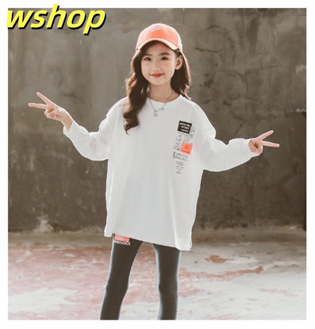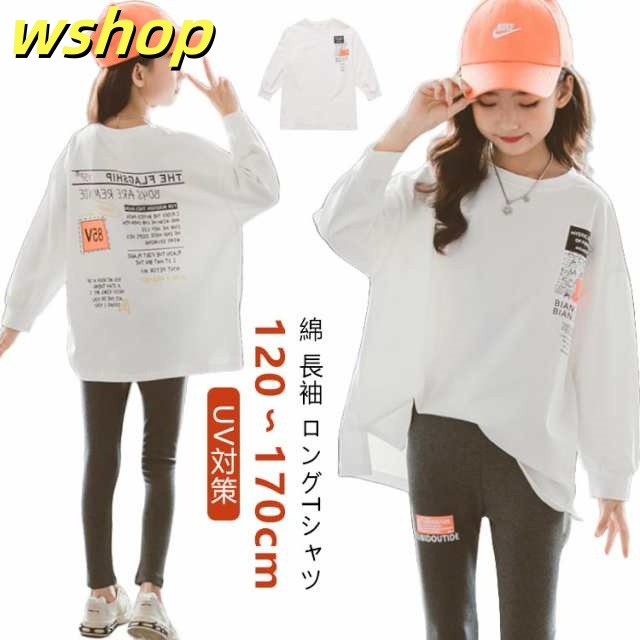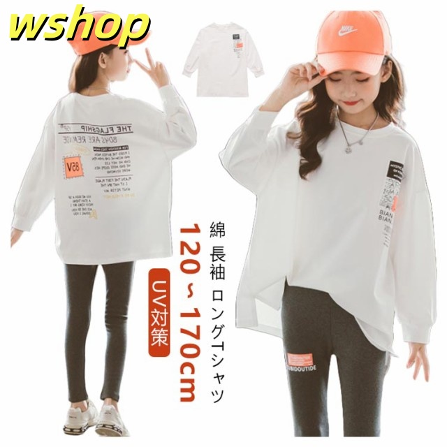 【wshop 】キッズ 綿 長袖 ロングTシャツ 子供 小学生 服 女の子 ロンt ホワイト 120 130 140 150 160 170cm UV対策 日焼け止め カットソー ジュニア 長袖Tシャツ トップス トレーナー 韓国子供服 春服 秋服 ダンス 衣装 中学生 ファッション ガールズ