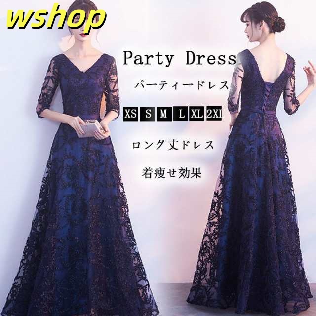 ウェディングドレス 結婚式 袖あり ロング丈ドレス レースワンピース Vネック パーティードレス フォーマル 二次会 着痩せ効果 花嫁ドレス 上品 演奏会