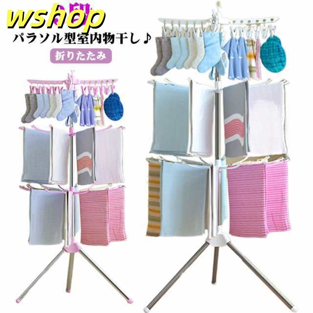 人気急上昇 ランキング常連 ピンチ付き タオル干し 室内物干し 室外 【wshop 室内干し 靴下ハンガー 3段 部屋干し ベビー服 パラソル型 洗濯干し 洋服 洗濯物 物干しスタンド 室内 洗濯物干し パラソルハンガー 】折りたたみ 送料無料