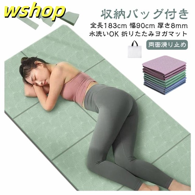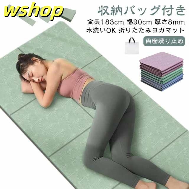 新登場 SNS話題 ダイエット 送料無料 滑り止め 8mm 幅90cm 軽量 持ち運び 筋トレ マット ホットヨガ 折りたたみ 【wshop ストレッチマット 】ヨガマット 収納バッグ付き トレーニングマット 幅広 厚手 全長183cm ピラティス TPE エクササイズマット 送料無料