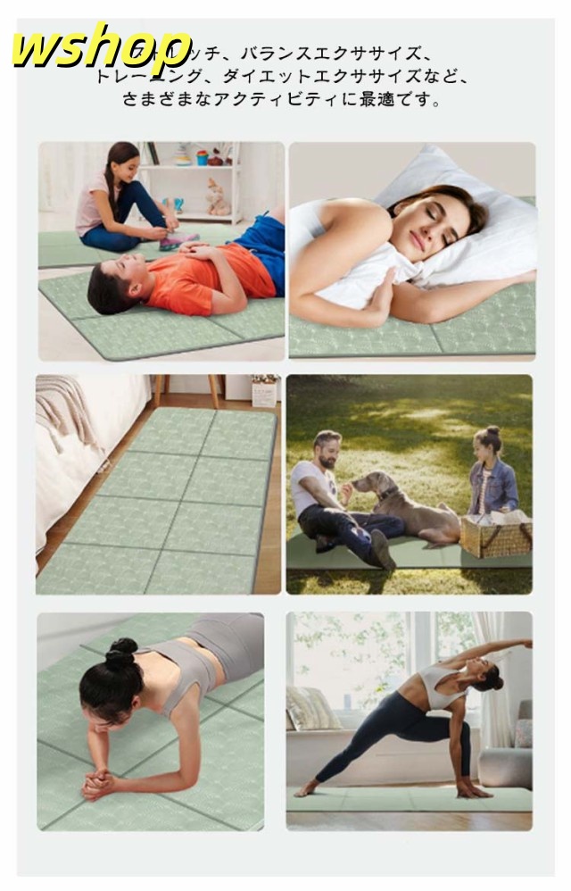 | 全長183cm 幅90cm 厚さ8mm 折りたたみヨガマット 両面滑り止め 収納バッグ付き 水洗いOK 両面滑り止め仕様でグリップ力に優れています。 ストレッチ、バランスエクササイズ、トレーニング、ダイエットエクササイズなど、さまざまなアクティビティに最適です。 | |