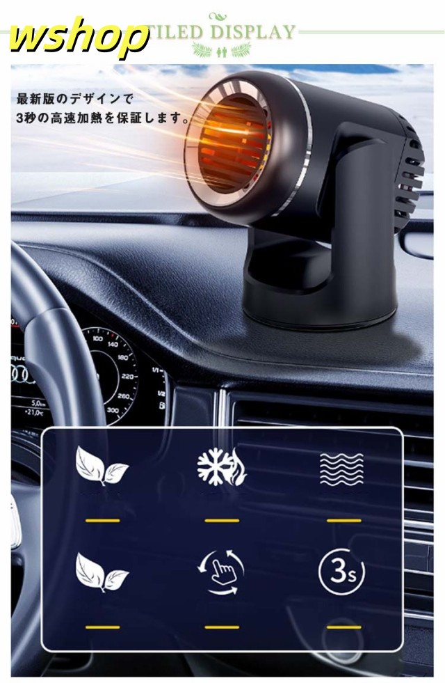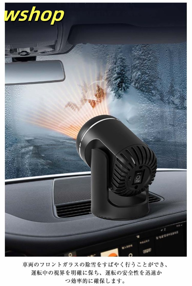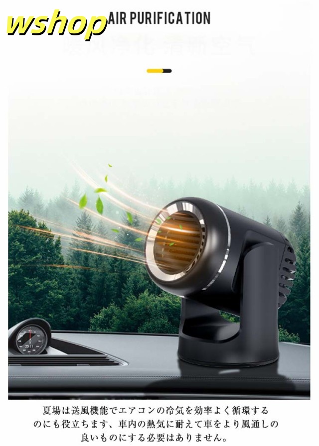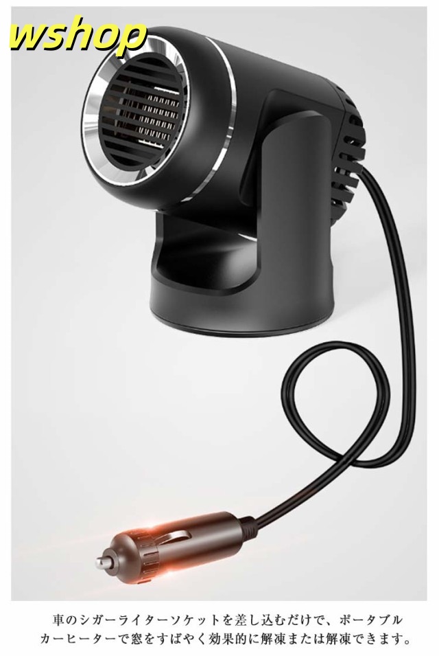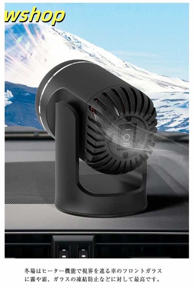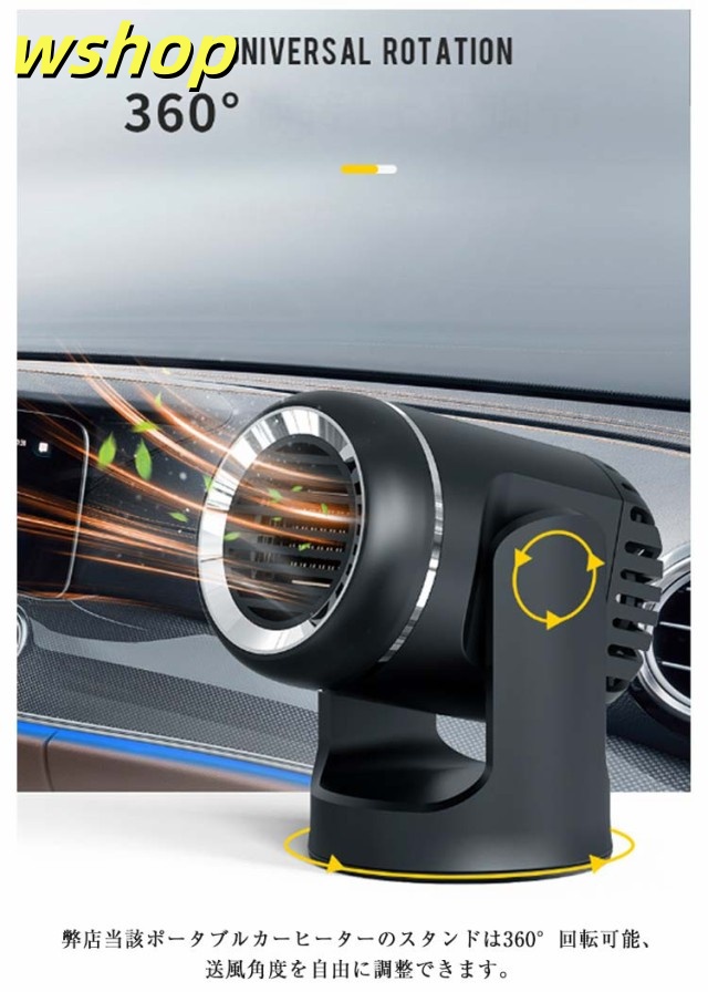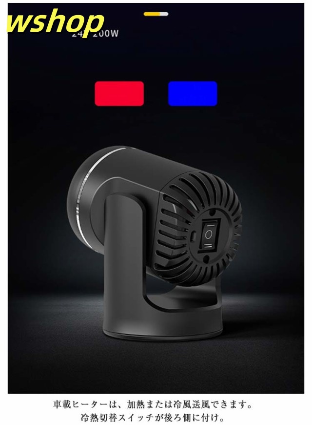 【wshop 】12V/24V 車載ファンヒーター カーヒーター 車用ファンヒーター 3秒速暖 車載暖房 冷熱両用 シガーソケット給電式 低消費エネルギー 曇り防止 360°回転 2in1冷熱両用 冬対策 暖かさ 霜取り 静音 温風 送風 取り付け簡単 滑り止め 小型 自動車 トラック