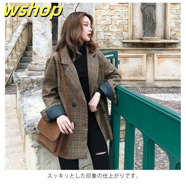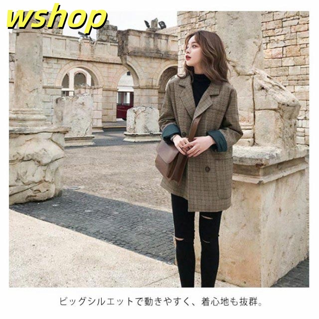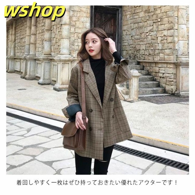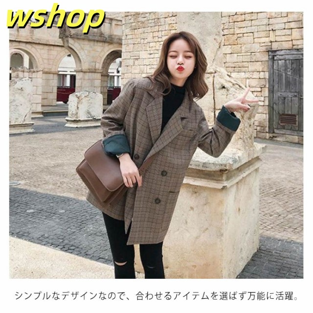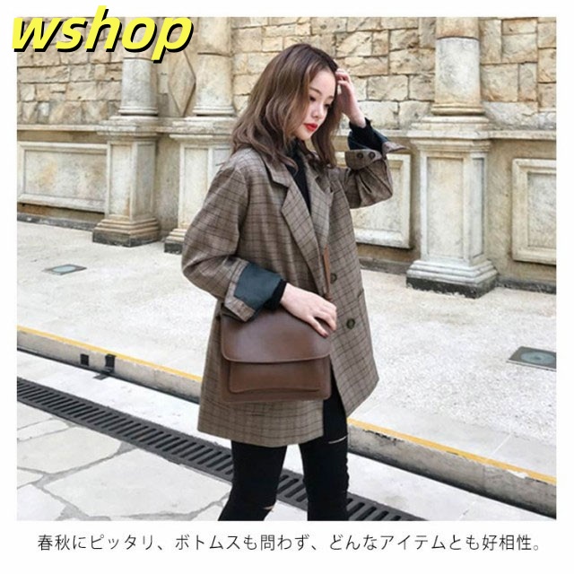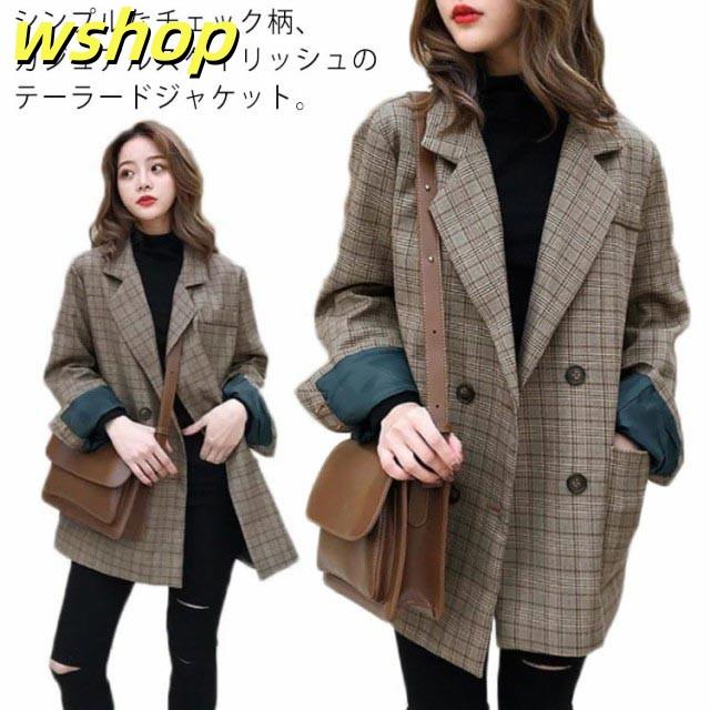 2XL テーラードジャケット コート 上品 アウター 長袖 ルーズ お洒落 可愛い 通勤 ブルゾン 春 秋 秋コーデ レディース グレンチェック 通学 S M L XL スーツジャケット