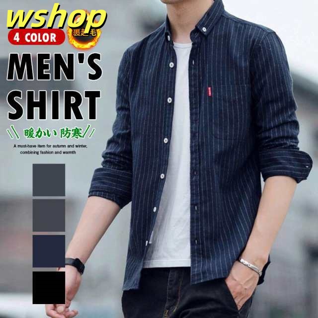 生活快適特集 ギフトにも最適 ビジネス ネルシャツ 新登場 トップ ゴルフ カジュアルシャツ 送料無料 メンズ 裏起毛 レビュー高評価 ストライプ 【wshop 防寒 裏ボア 厚手 ボタンダウン 】シャツ 長袖 送料無料実施中
