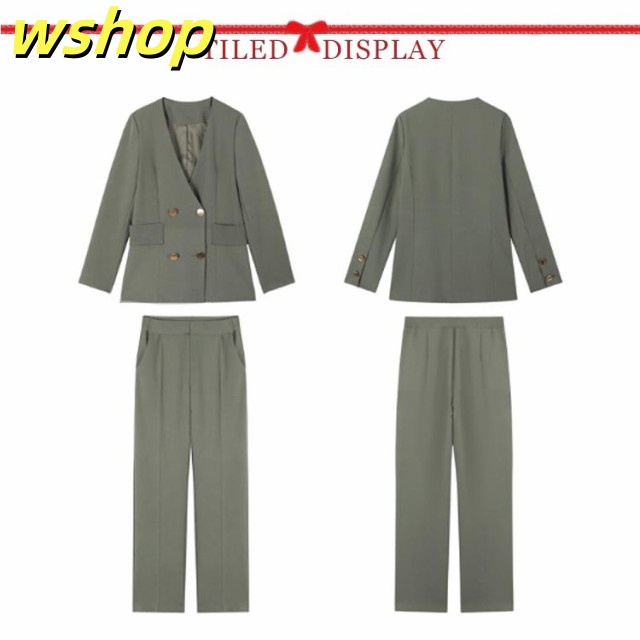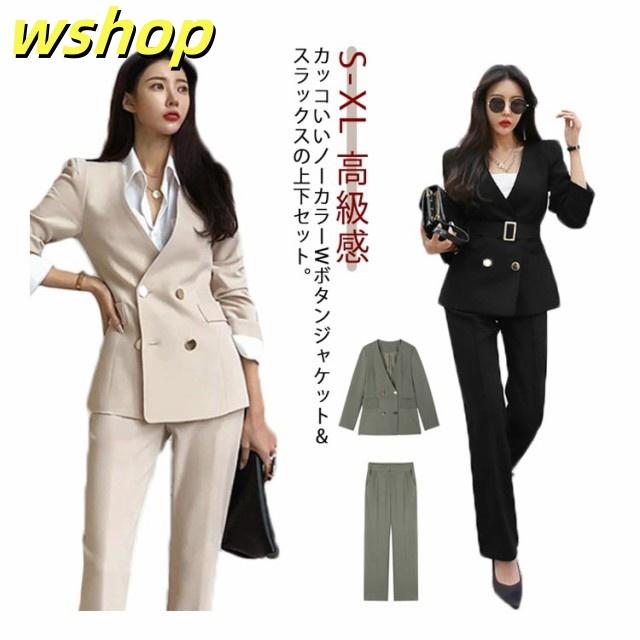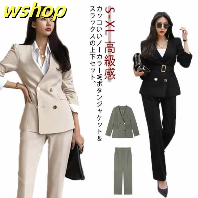 即納OK 売上急増中 セットアップ 上下セット 母 ビジネス フォーマル パーティ セレモニー ダブルボタン 参観 スーツ 20代30代40代 ノーカラージャケット レディース 】ジャケット ママスーツ 【wshop 春秋 パンツスーツ オフィス 高級感 結婚式 送料無料