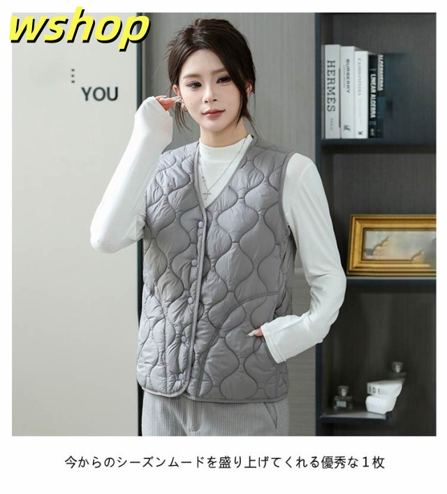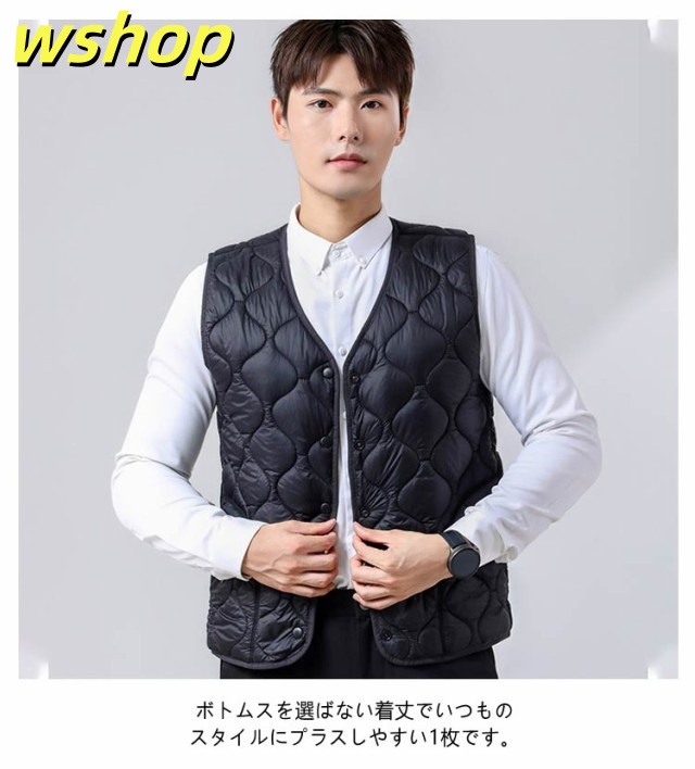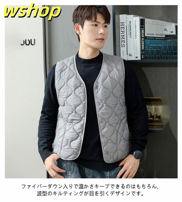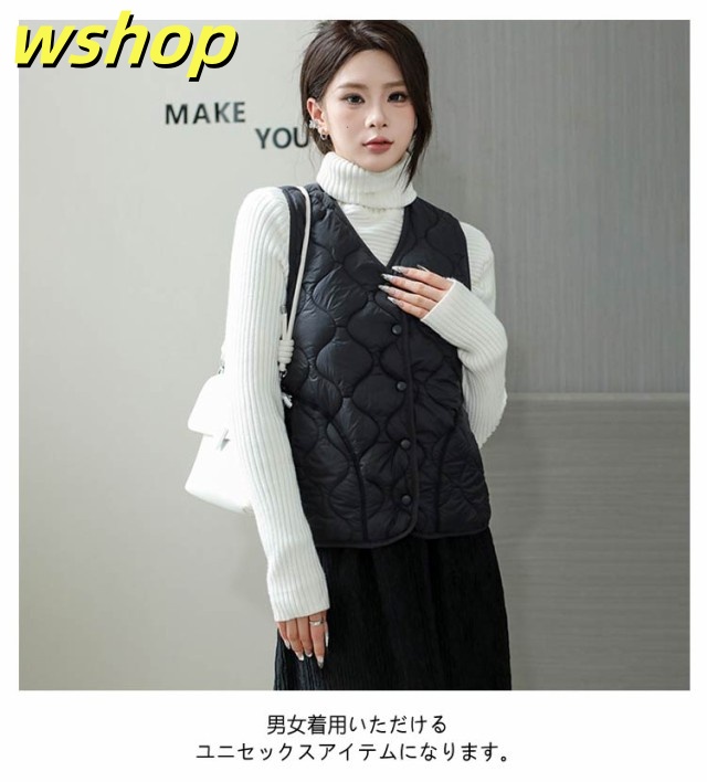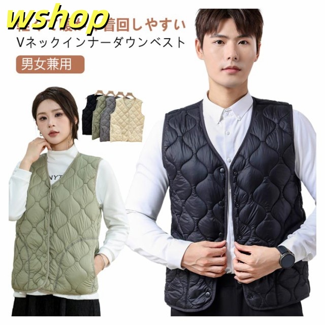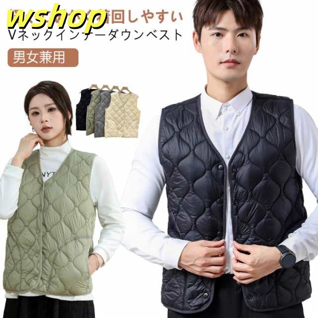 インナーベスト レディース メンズ インナーダウンベスト ファイバーダウン ベスト インナー 中綿ベスト Vネック 薄手 軽量 秋 冬 エコダウンベスト ポケット付き あったか 防寒 保温 大きいサイズ きれいめ 波型 キルティングベスト キルトベスト ライトベスト 【送料無料】