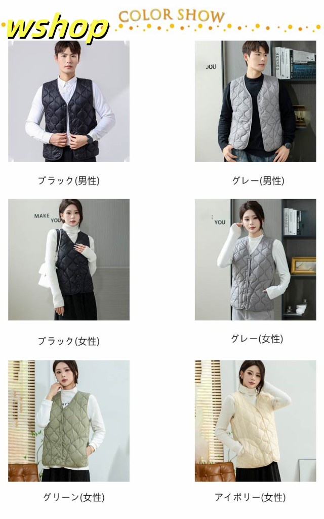 | 軽くて暖かく着回しやすいVネックインナーダウンベスト。【男女兼用】 ファイバーダウン入りで温かさキープできるのはもちろん、波型のキルティングが目を引くデザインです。 今からのシーズンムードを盛り上げてくれる優秀な1枚◎ ボトムスを選ばない着丈でいつものスタイルにプラスしやすい1枚です。 男女着用いただけるユニセックスアイテムになります。 普段使いはもちろん、キャンプやレジャー、アウトドア、通勤や通学などにも幅広いシーンで活躍するダウンベストジャケットです。 | |