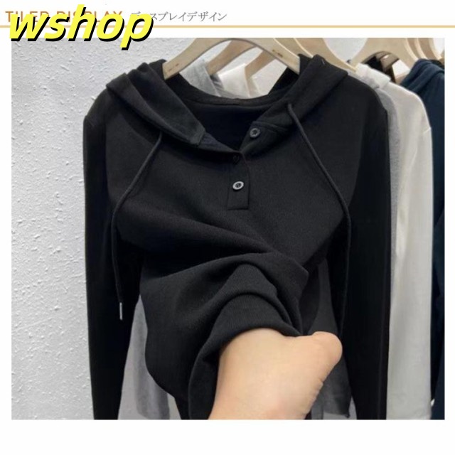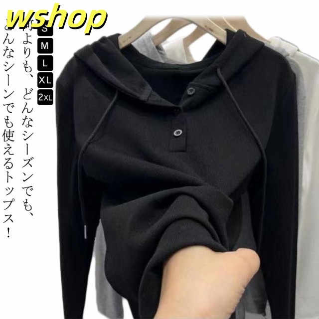 家中時間充実化 多機能デザイン 夏 tシャツ 白 Vネック 長袖tシャツ フード付き 今だけ 冬 レディース プルオーバー 秋 パーカー 【wshop 春 ランキング常連 ブラック カットソー 黒 収納便利 ゆったり 】送料無料 ロンティー ホワイト 送料無料実施中