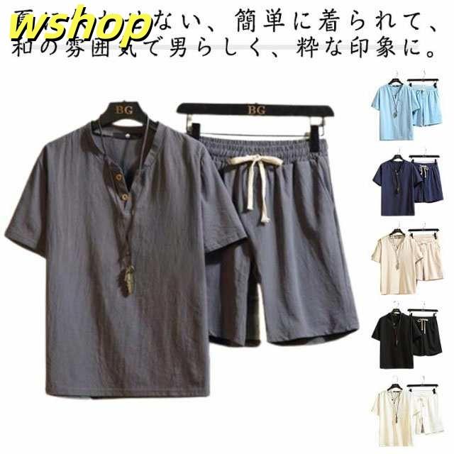 収納便利 レビュー高評価 和服 ヘンリーネック セットアップ 誕生日 50代60代 】甚平 寝巻き 綿麻 浴衣 彼氏 20代30代40代 大きいサイズ 父 ゆかた メンズ 敬老の日 涼しい 部屋着 短パン 夏服 セット 【wshop シャツ じんべい パジャマ 在庫わずか