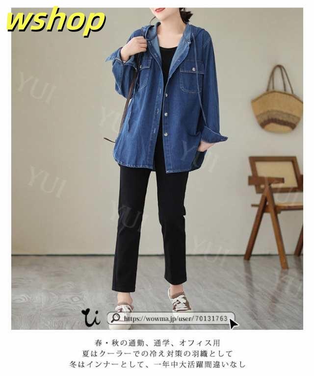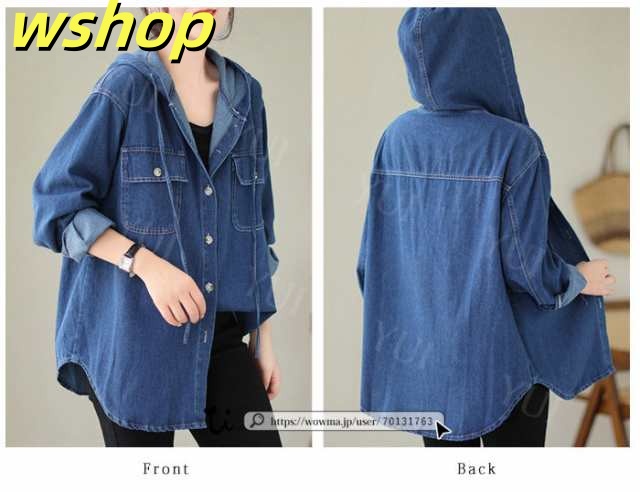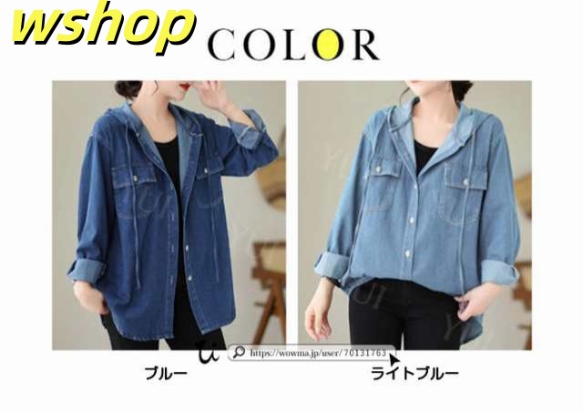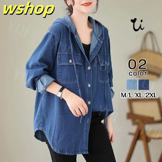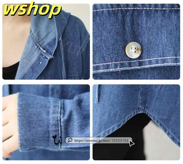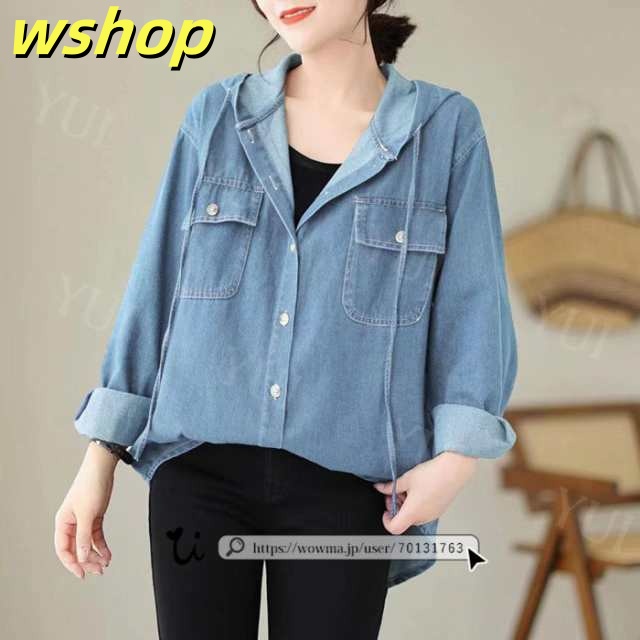【wshop 】デニムシャツ 長袖 秋新作 新作 レディース トップス シャツ トップス ウエスタンシャツ ジャケット フード付き 前開き アウター 無地 ゆったり ロング デニム コート春 カジュアル シャツ おしゃれ 通学 通勤 OL 着?せ 可愛い 送料無料 20代 30代 40代 50代