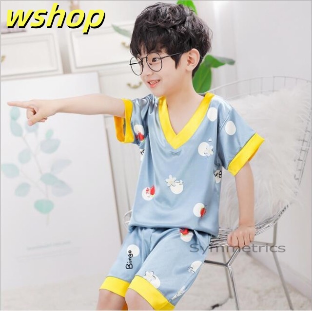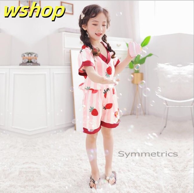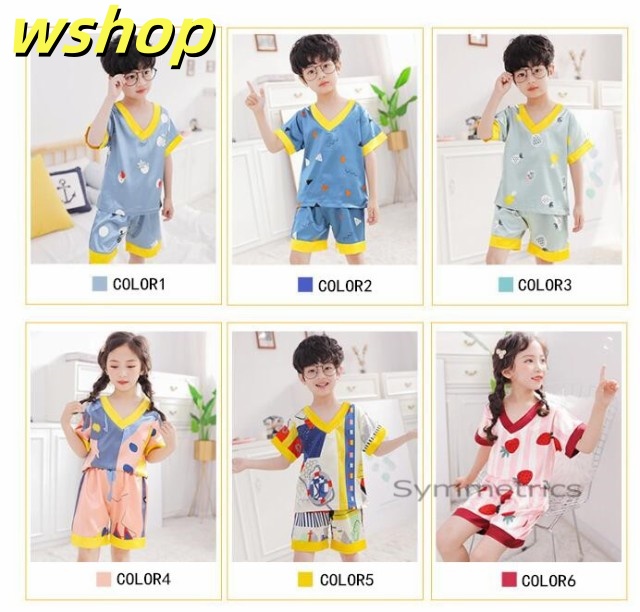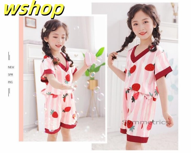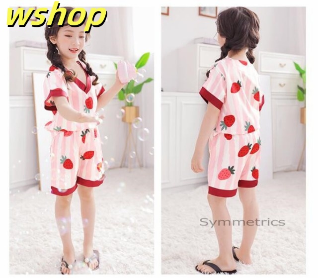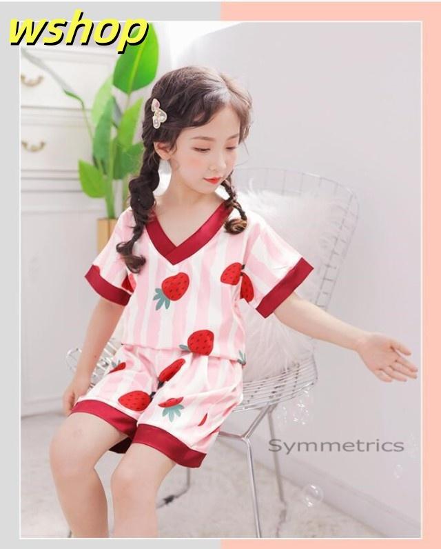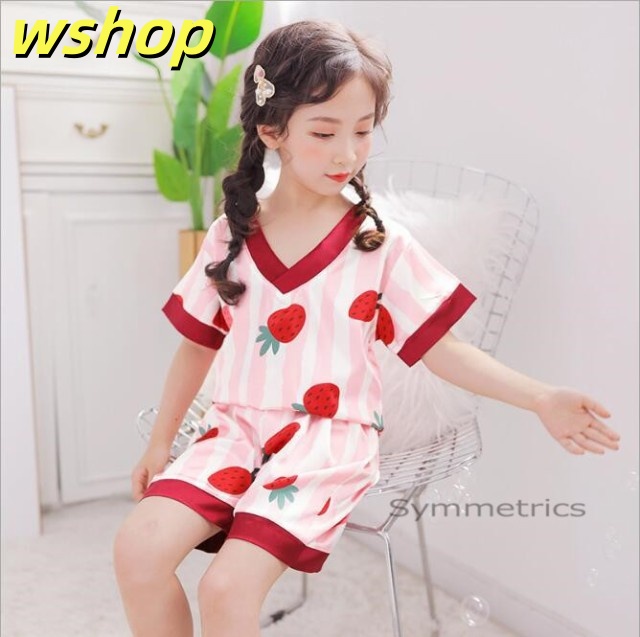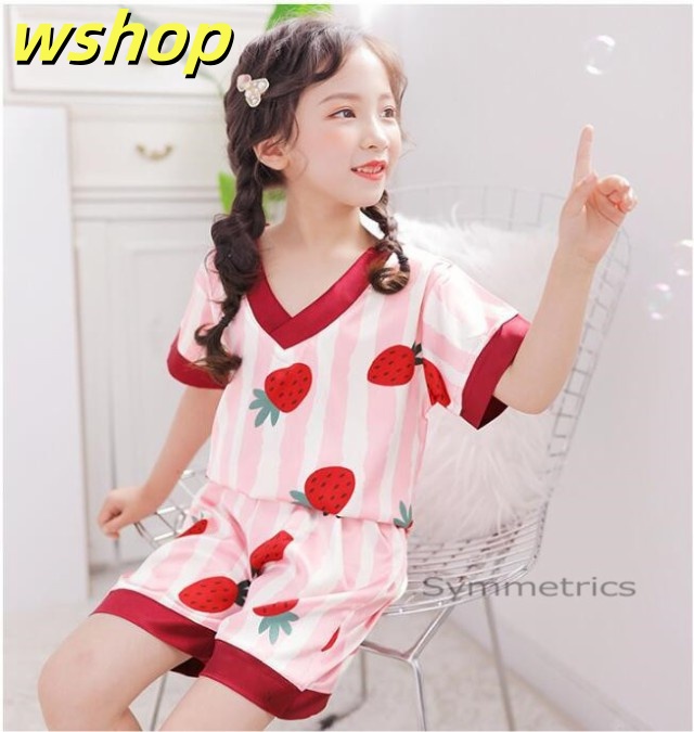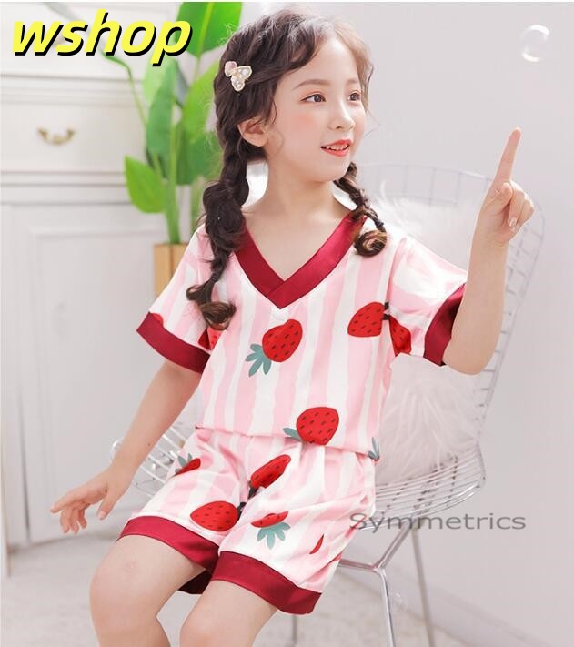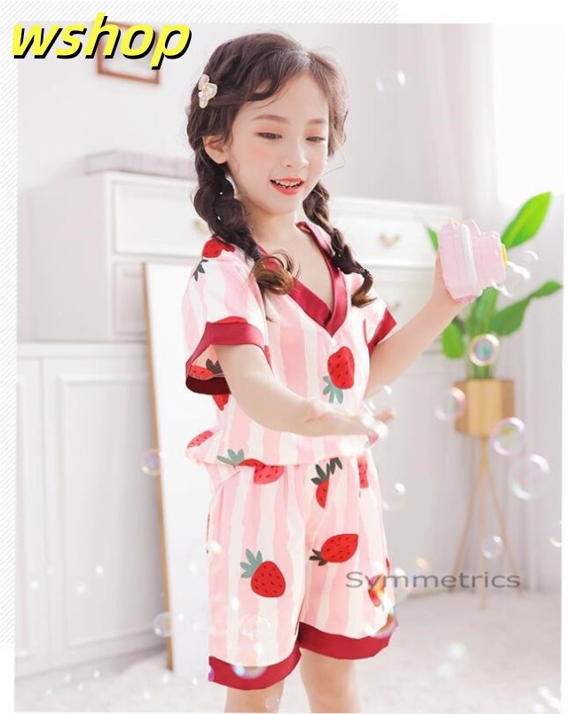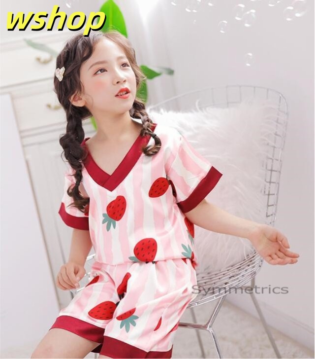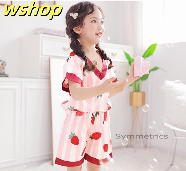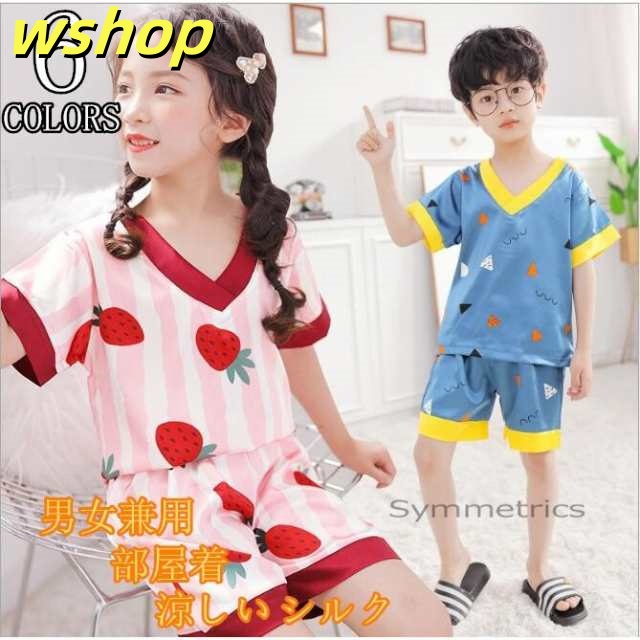 レビュー高評価商品 品質安心 男女兼用 今だけ 子供パジャマ 【wshop 可愛い ルームウェア 話題商品 セットアップ アイスシルク 】キッズ ランキング常連 夏 パジャマ 半袖 かわいい 寝巻き ナイトウェア 涼しい 部屋着 無地 いちご 数量限定入荷