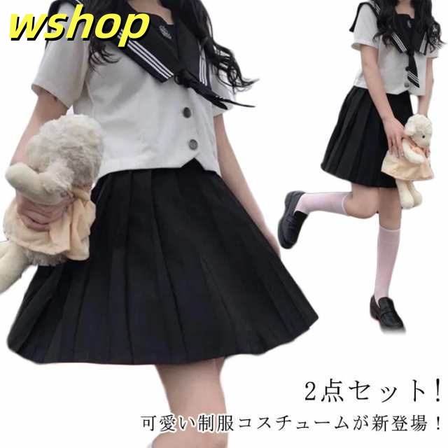 ブラック JK制服 2点セット 高校生 セーラー服 半袖 高校生 学園祭 スーツ 女子制服 コスプレ 大きいサイズ 学生服 可愛い 上下セット 衣装 セーラー服 文化祭 大きいサイズ 女子JK制服 レディース 学園祭 大人 女子高校生 コスプレ セクシー コスチューム衣装 送料無料