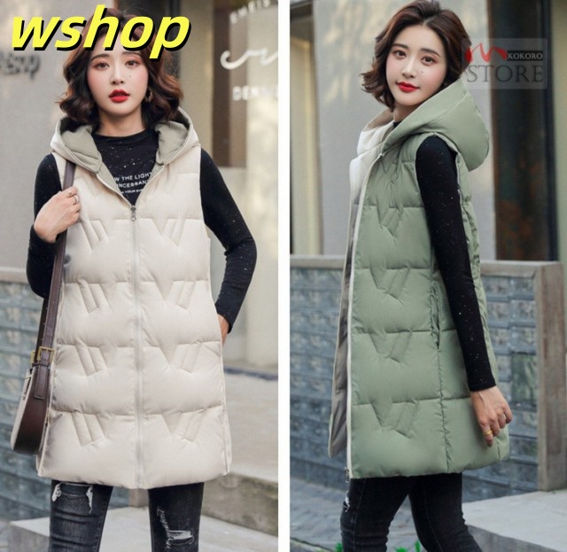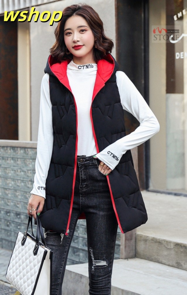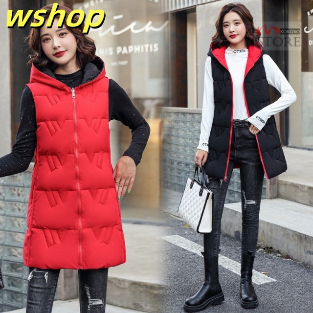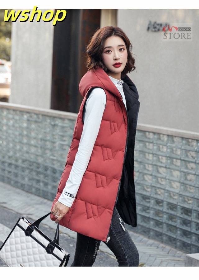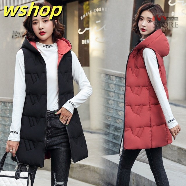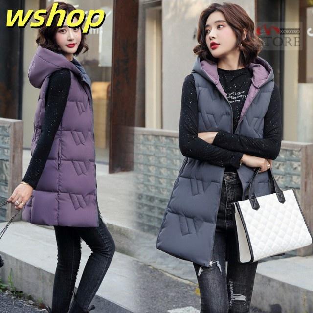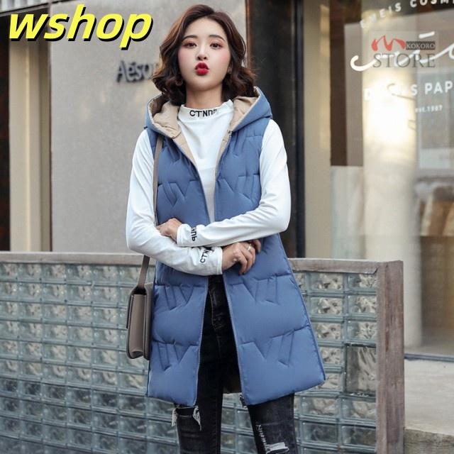 注目ランキング上位 毎日使える便利品 新登場 レビュー高評価 キルティングベスト フード付き 【wshop 】レディース 厚手 今だけ 防寒着 暖かい 秋冬 両面用 ロング丈 防風 ベスト 中綿ベスト 数量限定入荷