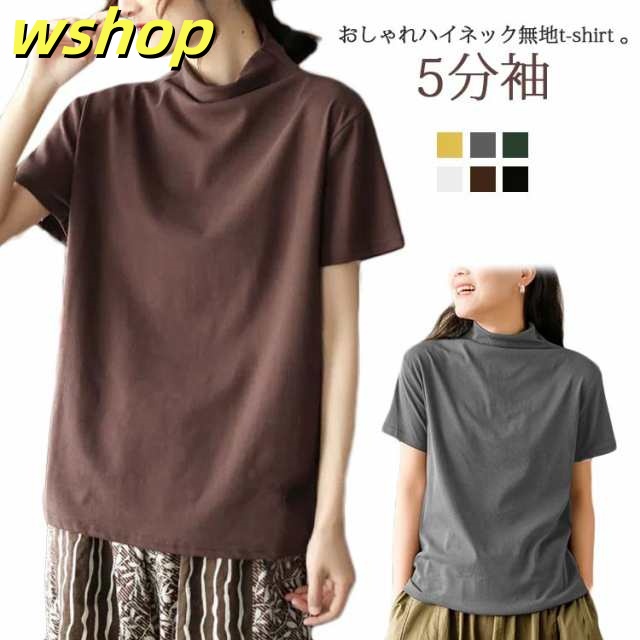 秋の新作特集 品質安心 夏服 【wshop コットン 即納OK 春夏 無地 今だけ tシャツ シンプル おしゃれ 】ハイネック半袖tシャツ 五分袖カットソー 綿 ハイネック 半袖tシャツ 半袖 カットソー ランキング常連 秋服 可愛い ハイネックtシャツ お買い得プライス