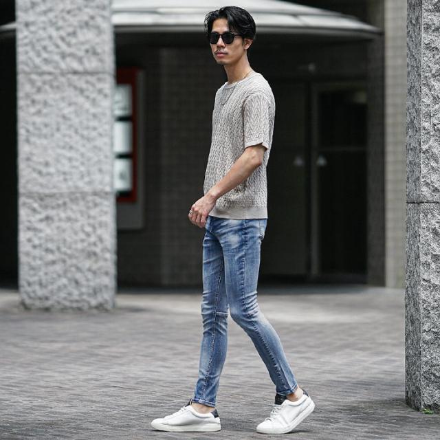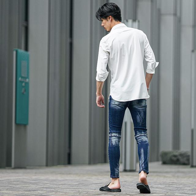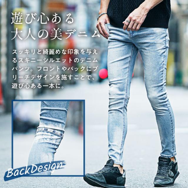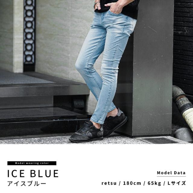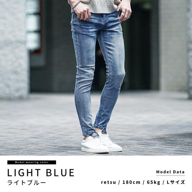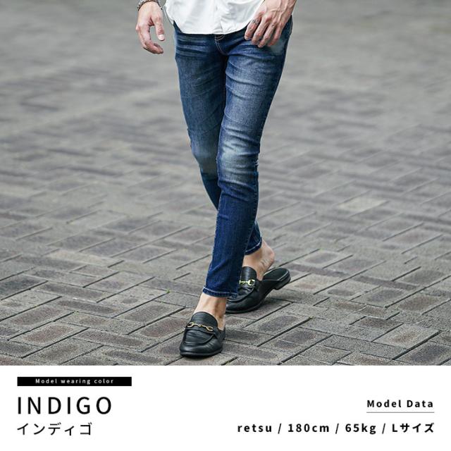 ストレッチデニム メンズ ジーパン メンズ スキニーデニム メンズ ジーンズ スキニー デニム ジーンズ ストレッチ パンツ 色落ち加工 細身 インディゴ ブルー 青 夏 夏服 夏物 春夏 メンズファッション ちょいワル お兄系 オラオラ系
