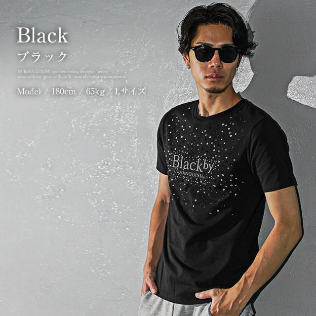 黒Tシャツ メンズ ブランド Tシャツ メンズ 半袖 細身 ラインストーン ロゴTシャツ メンズ スリム 半袖tシャツ メンズ クルーネック 夏 夏服 夏物 メンズファッション ちょいワル Black by VANQUISH ブラックバイヴァンキッシュ