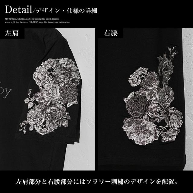 Black by VANQUISH 『フラワー刺繍Tシャツ』【フラワー刺繍Tシャツ】■Design/デザイン大きな刺繍が存在感を魅せるフラワー刺繍Tシャツが登場。フロント部分のBlack by VANQUISHの同系色の刺繍は男らしさを強調し、見るものを魅了する。左肩とバック部分の右裾には立体感のある花柄の刺繍を施すことで高級感のあるオトナコーデへと仕上げる。首元にはオリジナルのネームプレートを配置することで細部にまでデザインを施し、他との差別化を演出。綿を使用した滑らかな生地感が魅力で、スリムなサイジングながらストレス感なく着用できる1枚。大胆にフラワー刺繍Tを着こなせ。■Material/素材感綿を使用した、柔らかくなめらかで肌触りの良い生地感が特徴。