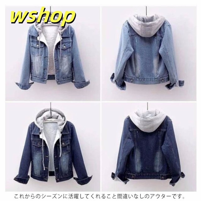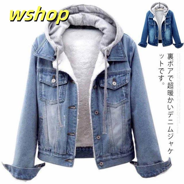 軽量仕様 SNS話題 ライトアウター 秋冬 】デニム ボア付き 防寒着 【wshop 長袖 送料無料 Gジャン ふわふわ コート 暖かい 厚手 フード付き ジージャン 裏ボア コットン 裏起毛 もこもこ ブルゾン 綿 アウター レディース ジャケット 在庫わずか