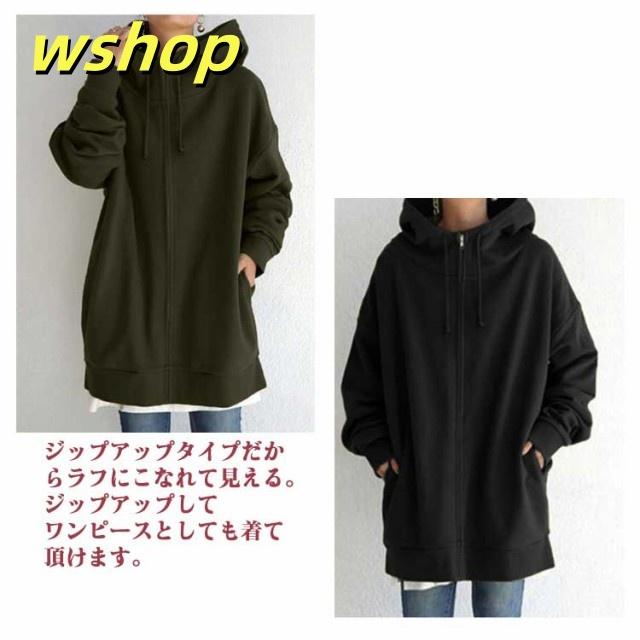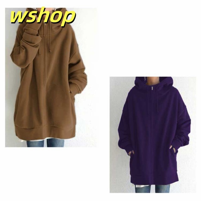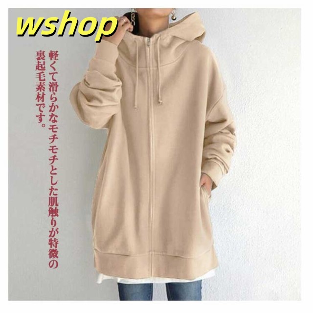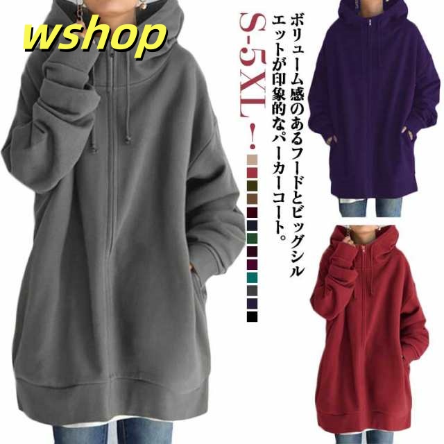 【wshop 】ボリュームネック パーカー 長袖 レディース ロング丈 パーカー ロングパーカー ハイネック パーカー ジップアップパーカー スウェット フード付き 裏起毛 ロングカーディガン 体型カバー トップス 薄 着痩せ あったか おしゃれ ゆったり 大きいサイズ 防寒 秋冬 春