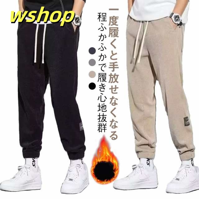 新登場 売上急増中 【wshop テーパードパンツ ワイドパンツ メンズ ロングパンツ ストレッチパンツ シンプル 軽量 】スウェットパンツ リラックス コーデュロイパンツ イージーパンツ カジュアル 裏起毛 暖かい 秋冬 無地 ズボン ウエストゴム ゆったり 防寒 快適 送料無料
