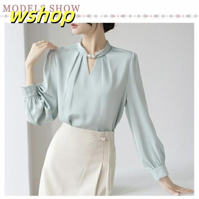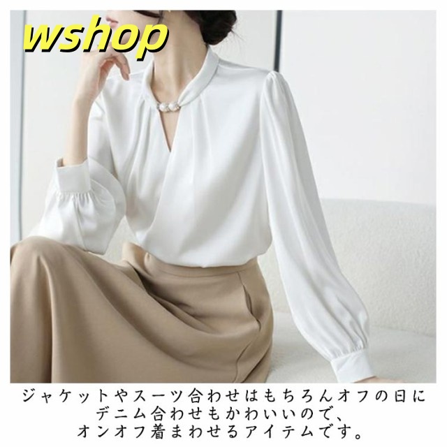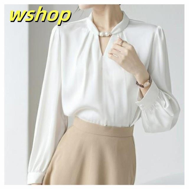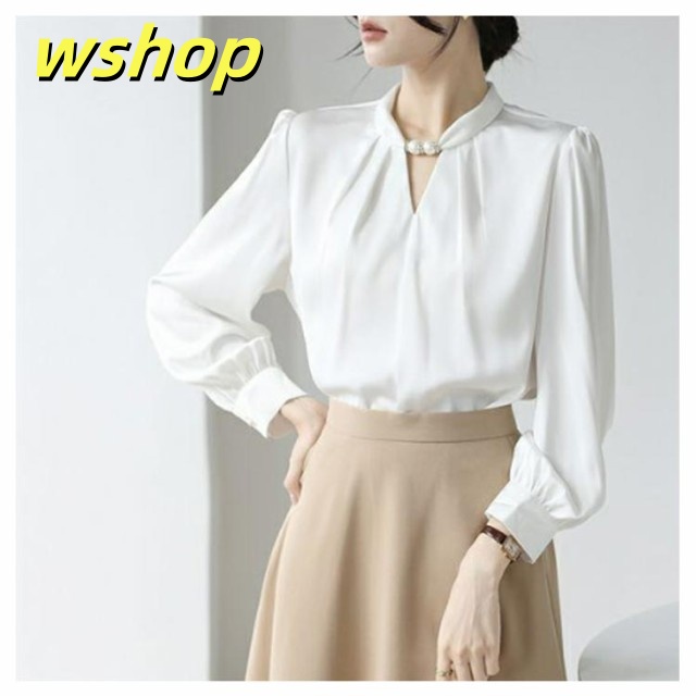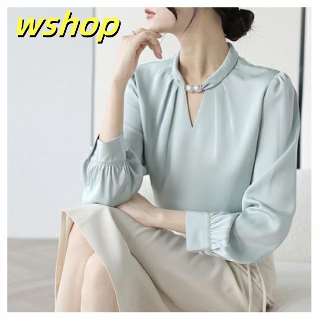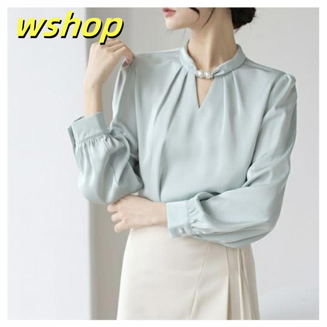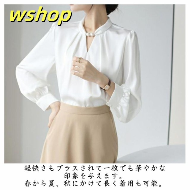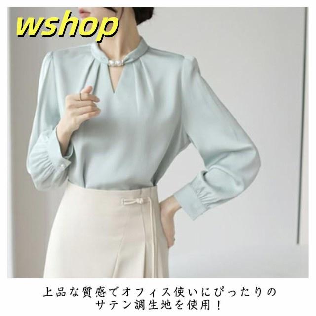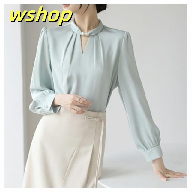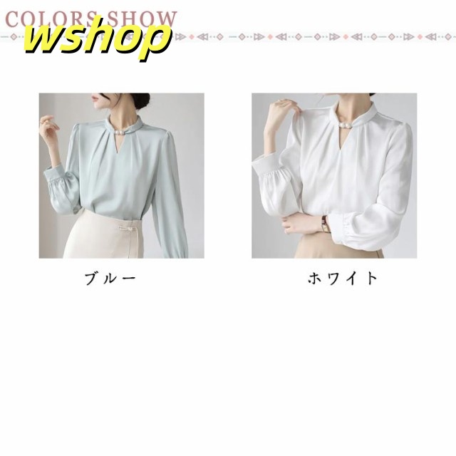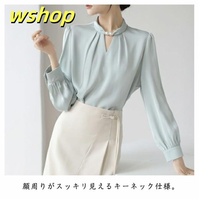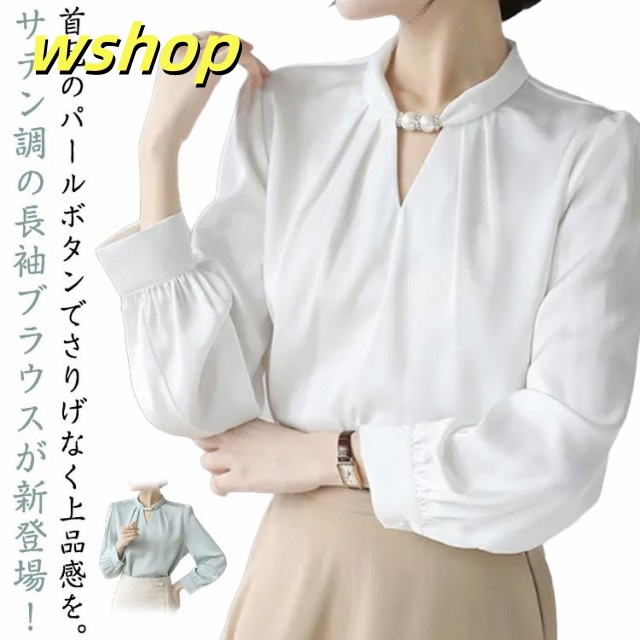家中時間充実化 品質安心 薄手 オケージョン ランキング常連 長袖 【wshop フォーマル 入学式 レディース パール 在庫わずか 卒業式 インナー 夏 キーネック 】トップス 軽量仕様 ブラウス ビジネス 春 秋 サテン調 通勤服 オフィスカジュアル 送料無料実施中