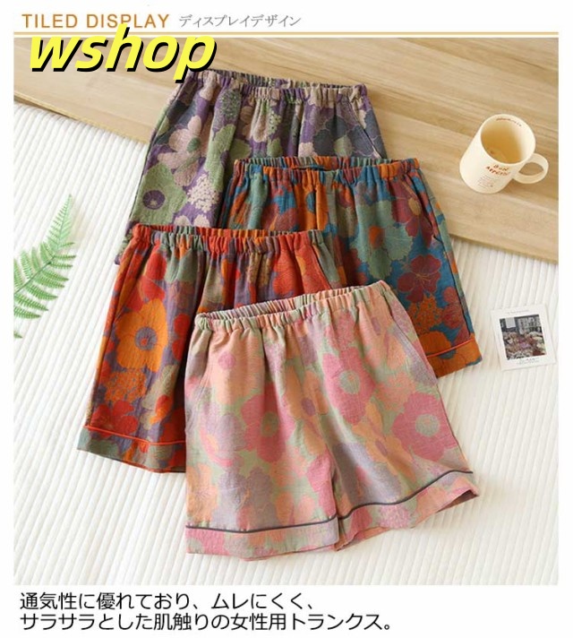 | 締めつけ感なく、肌に優しいコットン素材、 通気性に優れており、ムレにくく、サラサラとした肌触りの女性用トランクス。 幅広ゴムで食い込みにくく、程よいフィット感ではき心地抜群。 体に密着しないゆったりとした設計、身体を労り、 心と身体のストレスを解放してくれるレディース下着。 | |