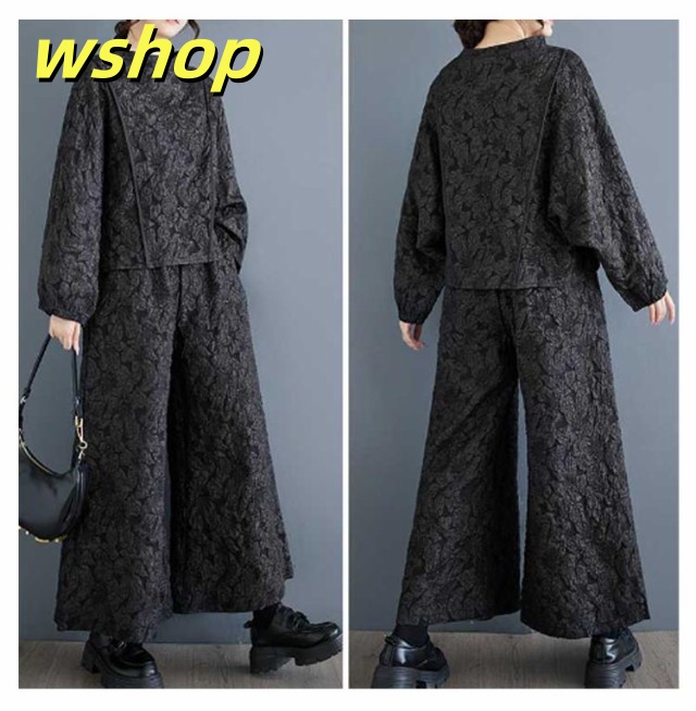 人気急上昇 ランキング常連 リラックスパンツ ジャガード スーツ ブラウス カラーパンツ プルオーバー オケージョン 】パーティードレス セットアップ スウェット 【wshop ストレートパンツ イージーパンツ パンツ フォーマル トレーナー 送料無料