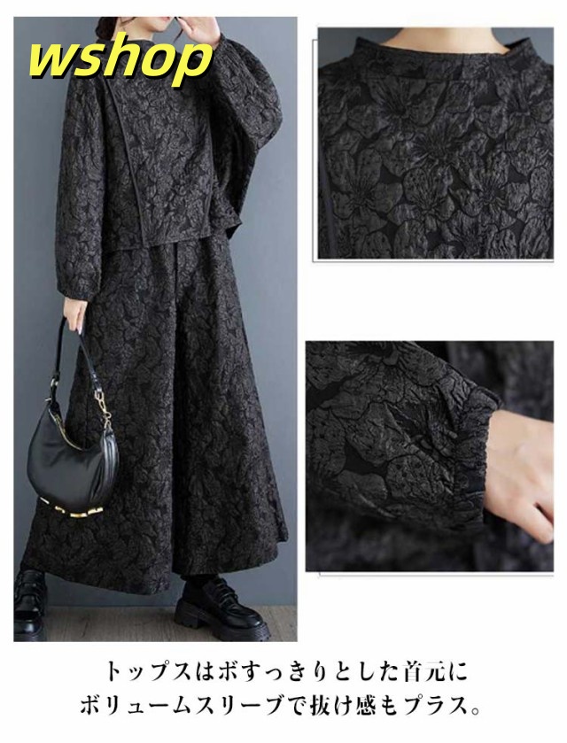 パーティードレス セットアップ ブラウス ジャガード パンツ セットアップ プルオーバー スウェット スーツ ストレートパンツ トレーナー リラックスパンツ イージーパンツ カラーパンツ ジャガード フォーマル オケージョン