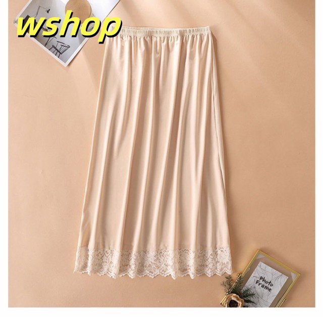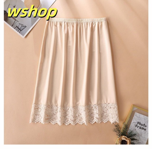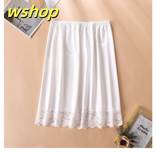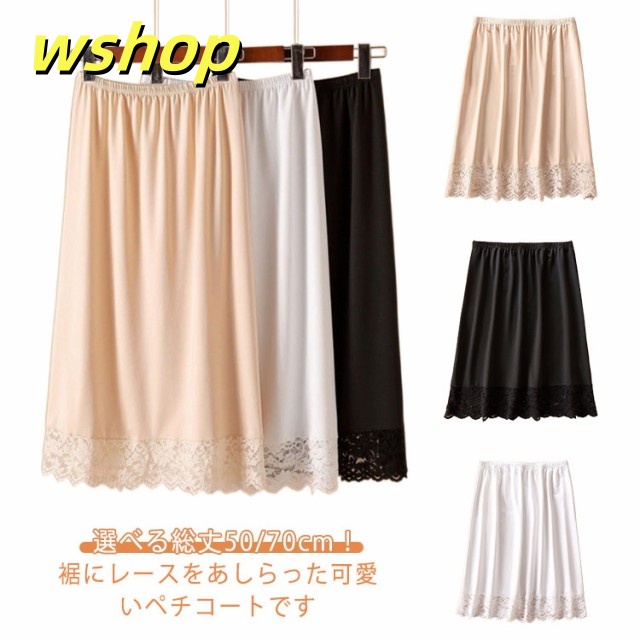 【wshop 】インナー ワンピース スカート 70cm 下着 透けない ペチコートスカート 透け防止 ブラック 和装 ロング レディース 肌着 ドレスインナー 裾レース 浴衣 白 着物 透け対策 ウエストゴム 肌色 ベージュ ペチコート 黒 50cm 速乾 ダンス用 母の日 プレゼント 贈り物 L