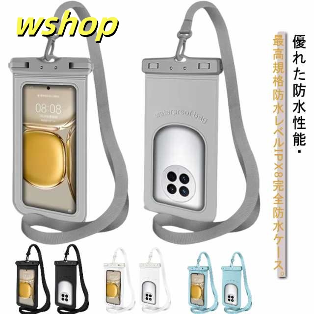 即納OK SNS話題 携帯ケース 顔認証 スマホ 携帯 防水ケース 夏 首掛け お風呂 スマホ対応 スマホポーチ 【wshop 釣り おしゃれ プール 送料無料 Android 海 スノボ 】ショルダー 水中撮影 完全防水 防水カバー 7.2インチ 防水等級IPX8 送料無料