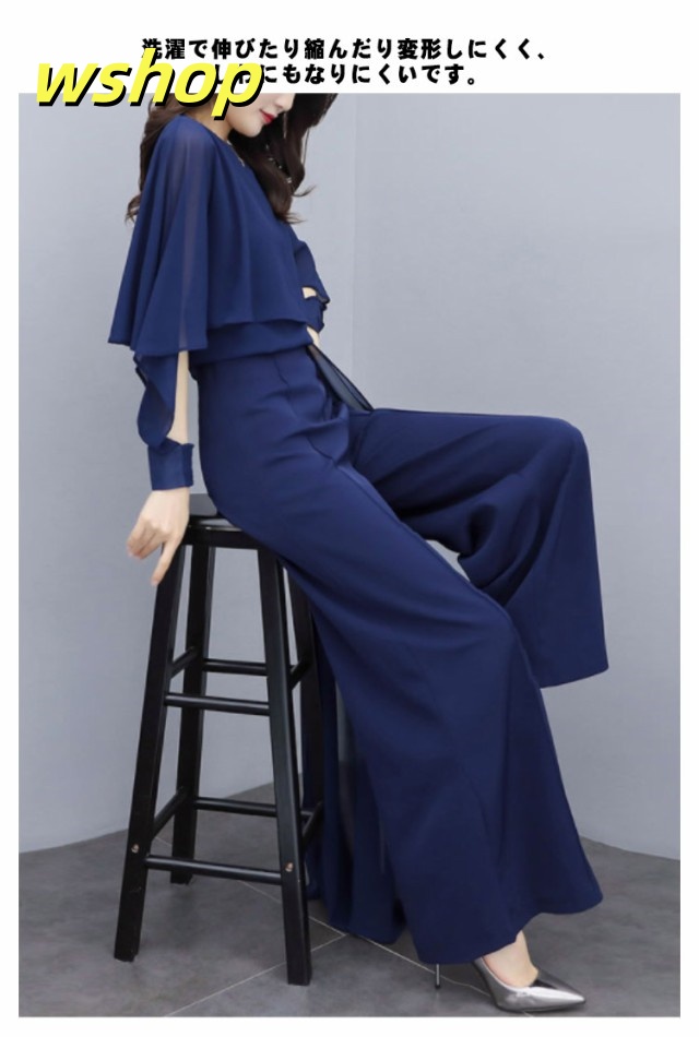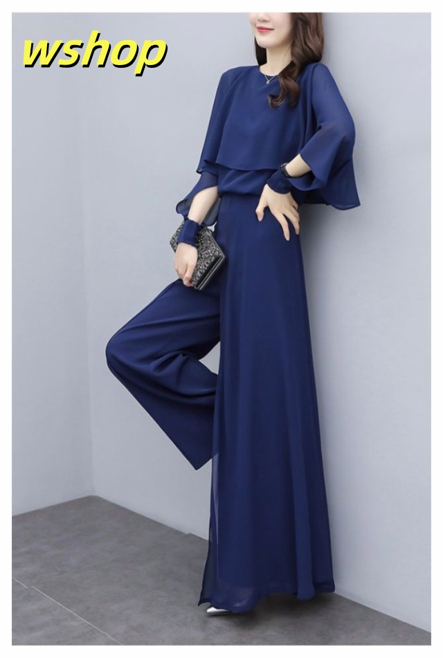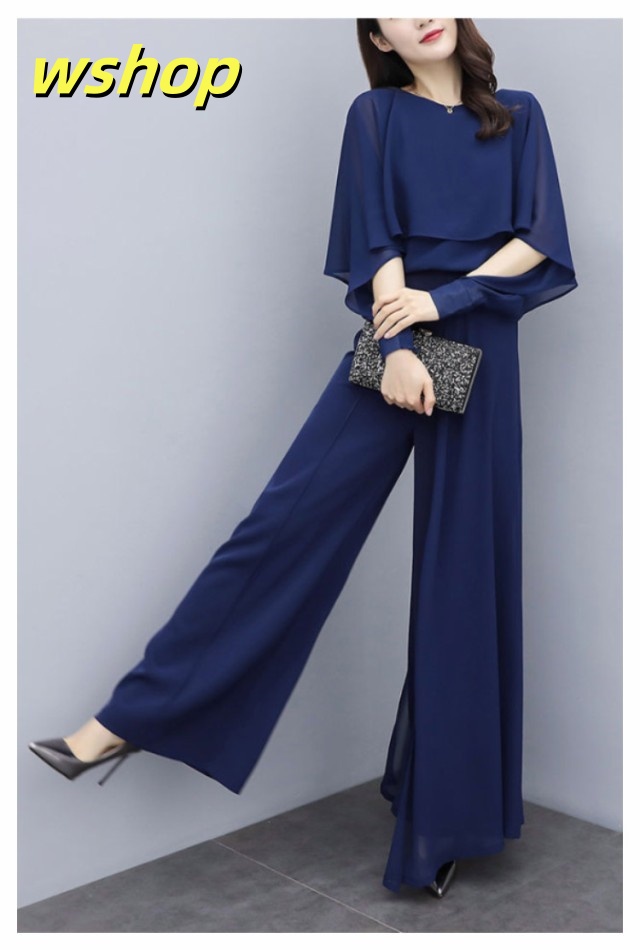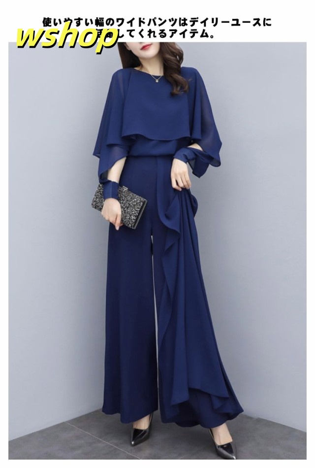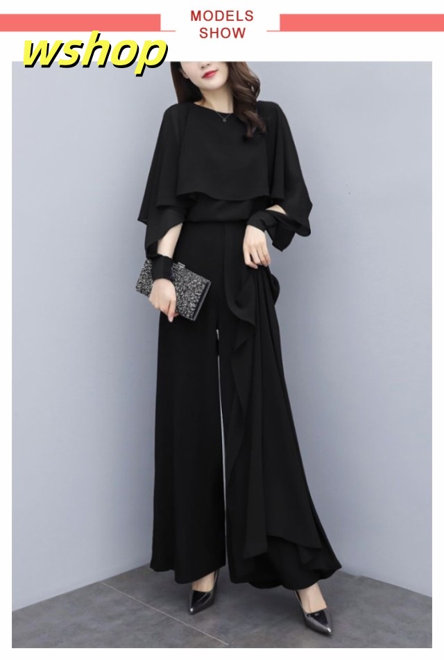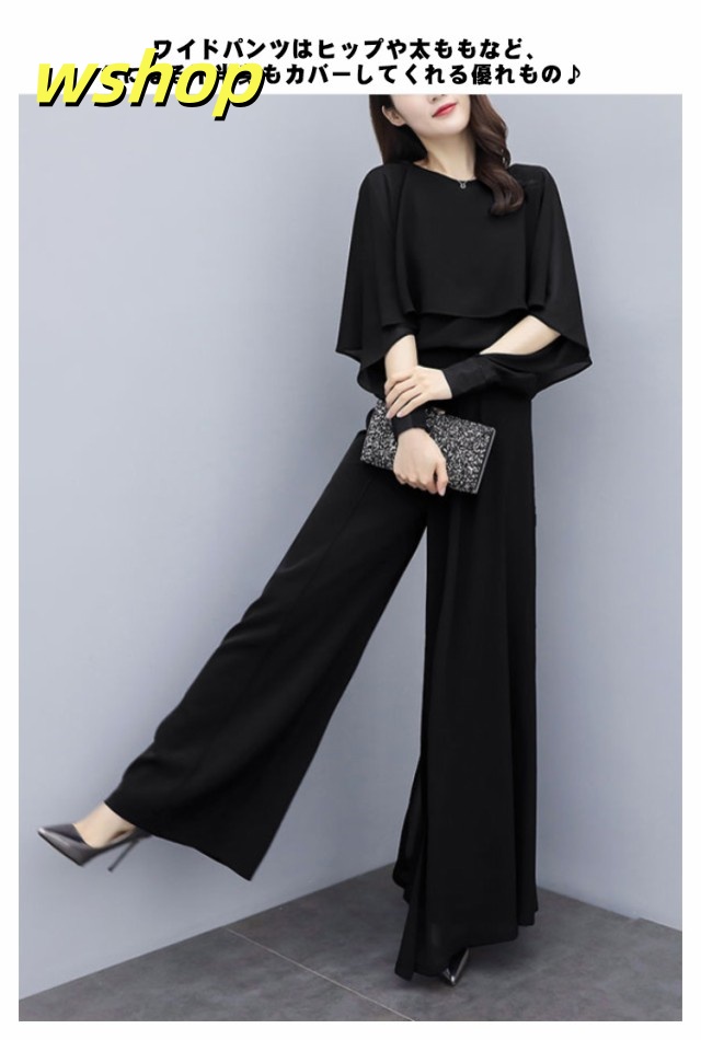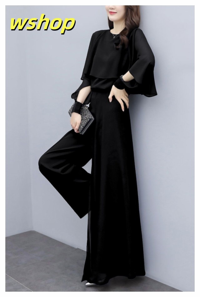 【wshop 】入学式 ママスーツ レディース 大きいサイズ 長袖 パンツスーツ おしゃれ 卒業式 母 卒園式 入園式 セットアップ シフォンスーツ 夏スーツ セレモニー スーツ オールインワン 七五三 お宮参り 母親 ブラック 黒 春 夏 秋 20代 30代 40代 50代 送料無料 大きいサイズ