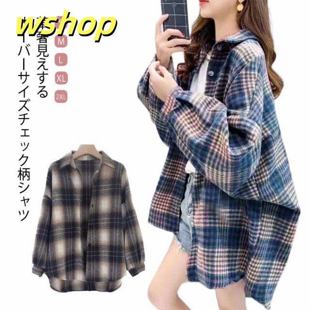 話題商品 ランキング常連 長袖 ネルチェック 春 アウター 大きいサイズ 【wshop ネルシャツ 厚手 大きめ 秋 】チュニックネルシャツ 体型カバー お尻が隠れる ロング丈 ビッグシャツ 羽織り 冬 レディース オーバーサイズ ボリューム袖 送料無料