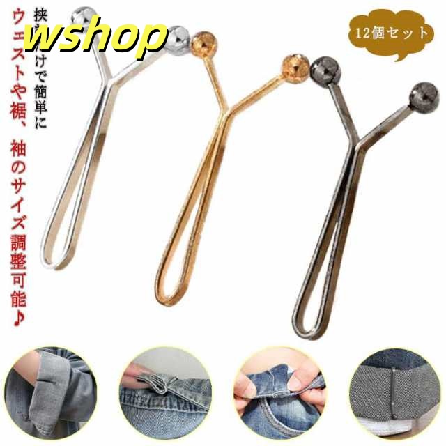 季節限定アイテム 多機能デザイン 軽量仕様 ウェスト調節 【wshop セルフウエスト調整 】アジャスター 挟むだけでウェスト調節 ランキング常連 12個セット サイズ直し クリップ Y字型 ウェストアジャスター 在庫わずか ピン セルフお直し ジーンズ 即納対応中