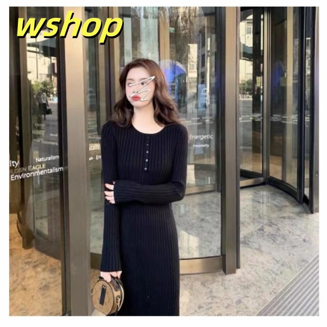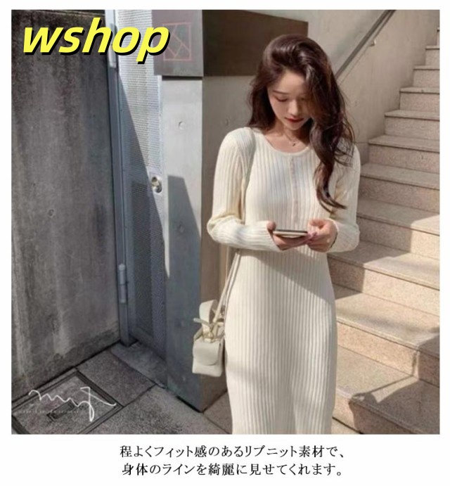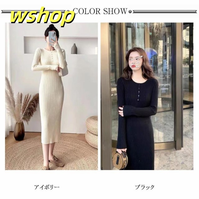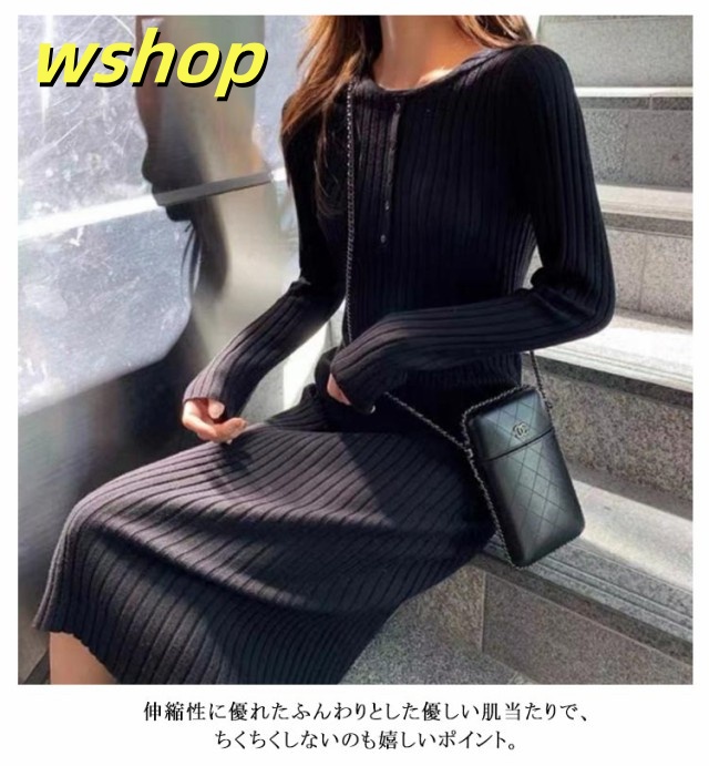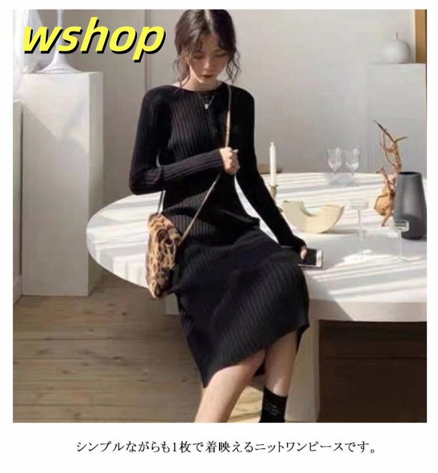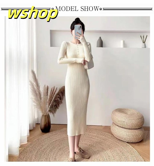 家中時間充実化 店長太鼓判 ロングワンピース ニットワンピ クールネック 秋 冬服 冬 リブ 体型カバー 【wshop 軽量仕様 】長袖 送料無料 レビュー高評価 ニットワンピース 無地 伸縮性 タイトワンピース ニット フィット 秋服 セーター 送料無料実施中