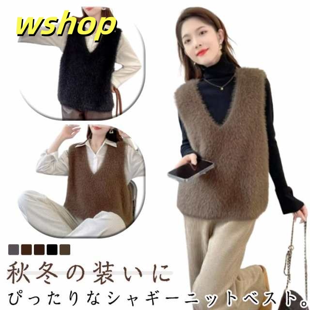 収納便利 売上急増中 毛足長め 可愛い レイヤード ファーベスト ノースリーブ 冬 】レディース 【wshop セーター ニットベスト もこもこ シャギー ベスト フェイクファー 30代 シャギーニット 40代 プルオーバー おしゃれ 秋冬 トップス 送料無料