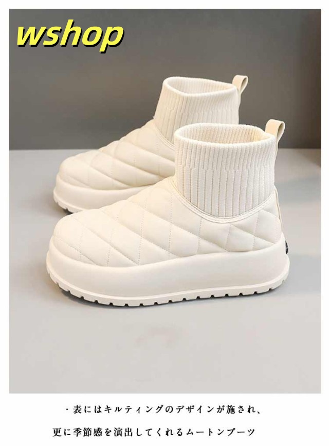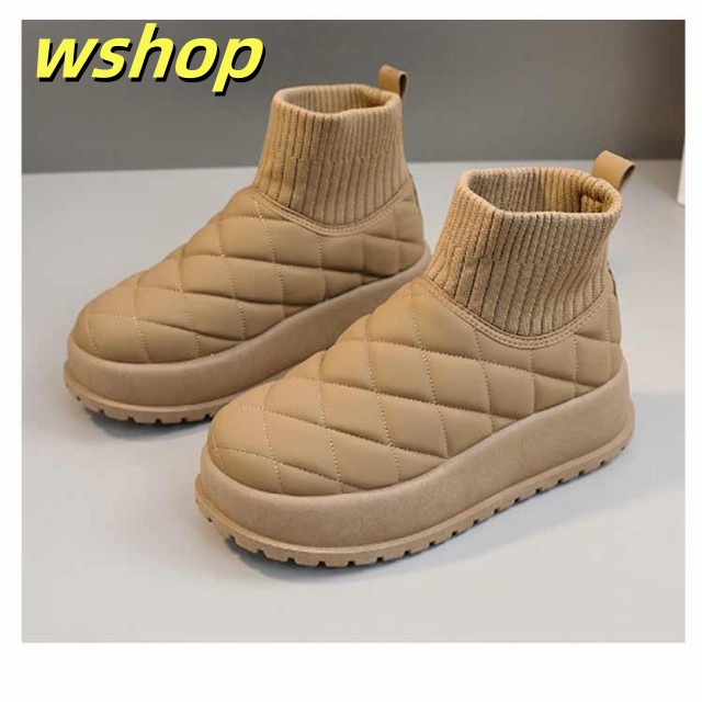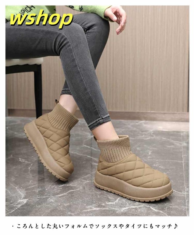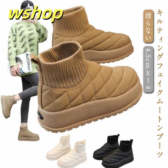 裏起毛 防寒ブーツ ショートブーツ 裏ボア レディース 中綿 スノーシューズ キルティング ラウンドトゥ ムートンブーツ ブーツ ブーツ 厚底 ウインター スノーブーツ 4.5cmヒール ニット 入り 滑らない 撥水 保温 通勤 通学 おしゃれ