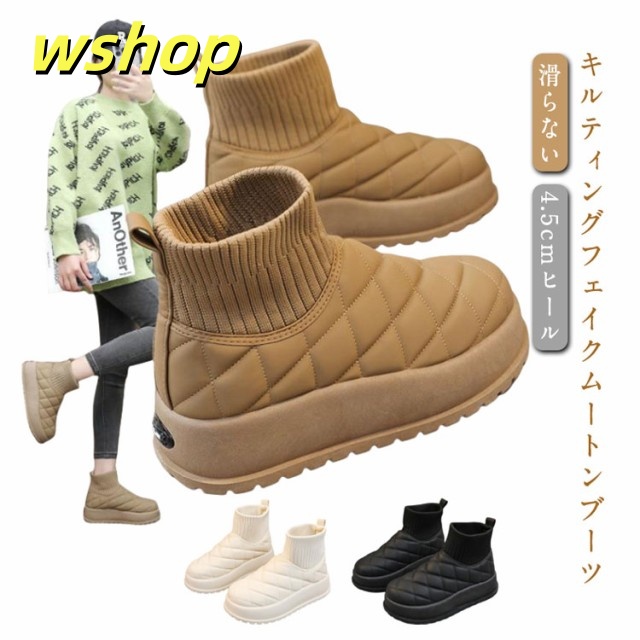 人気急上昇 レビュー高評価 キルティング ニット レディース 撥水 4.5cmヒール ウインター 滑らない 防寒ブーツ 保温 ショートブーツ 裏ボア スノーブーツ 通学 スノーシューズ 通勤 厚底 ムートンブーツ ブーツ おしゃれ 入り 】裏起毛 ラウンドトゥ 中綿 【wshop 在庫わずか