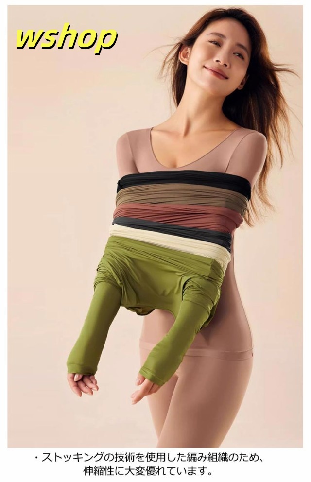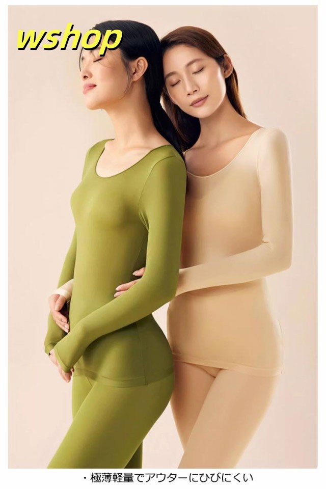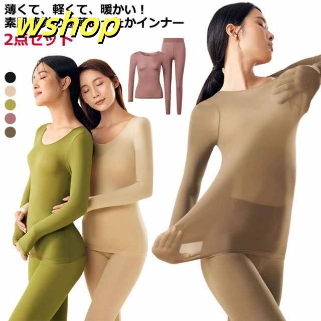 収納便利 ランキング常連 春 上下セット 下着 タイツ 肌着 2点セット 薄手 パンツ 長袖 】レディース 冬 あったか 【wshop インナーシャツ インナー あったかインナー アンダーウェア セットアップ フィット 秋 ストッキング生地 在庫わずか