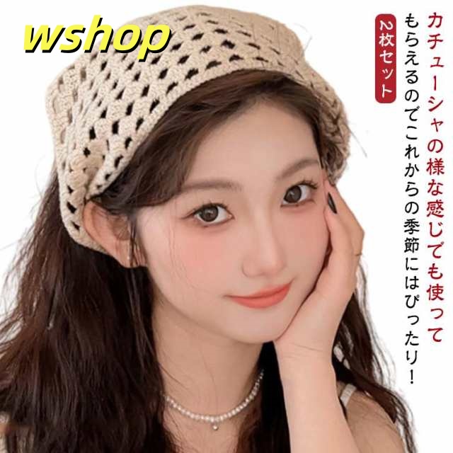 ヘアバンド カチューシャ アイボリー コットン 2枚セット!バブーシュカ レース編み ヘッドスカーフ 春夏 綿 大人可愛い 三角巾 レデイースヘアアクセサリー バブーシュカ ヘッドドレス 小顔効果 可愛い