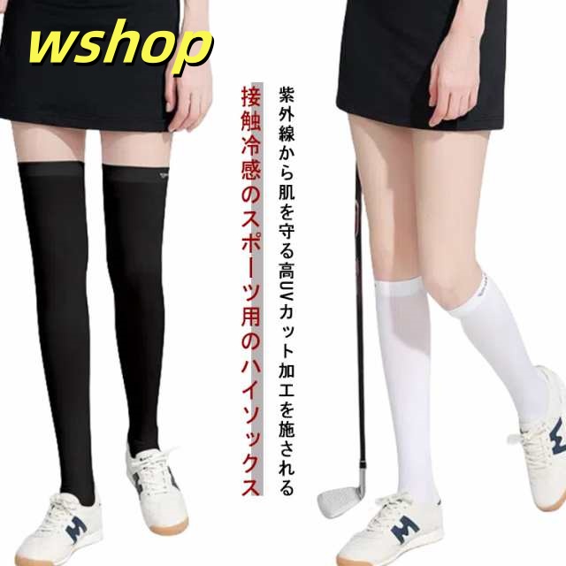 【wshop 】トレンカ 美脚 夏 ニーハイソックス タイツ 紫外線対策 ゴルフ 冷感 UVカット uvカット アウトドア ストッキング ハイソックス 膝上 2足セット レギンス ゴルフウェア ゴルフ レディース 日よけ対策 紫外線カット 薄手 吸汗速乾 インナー ストレッチ性