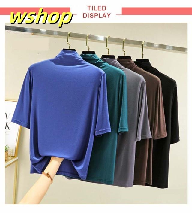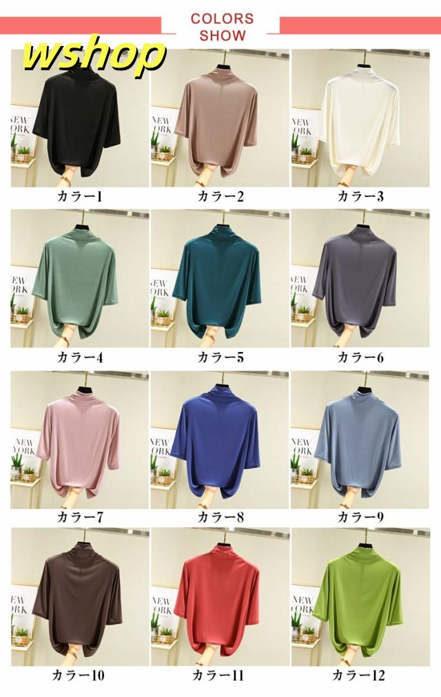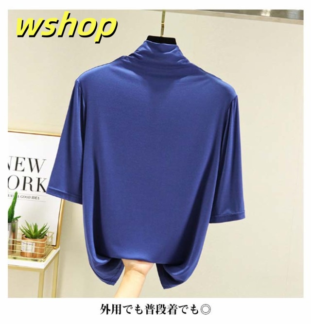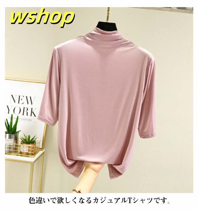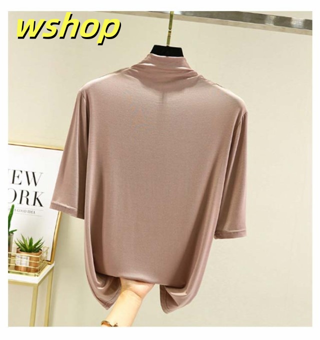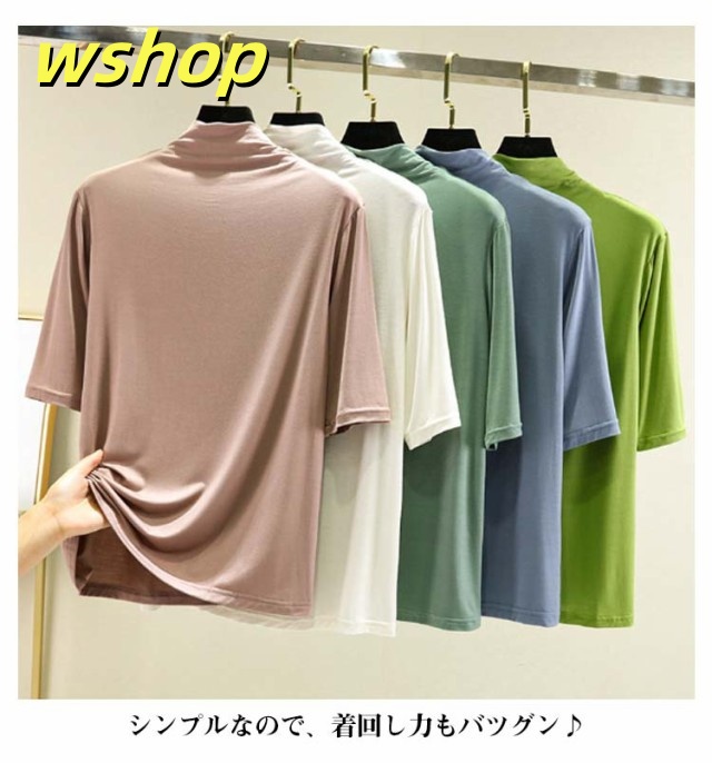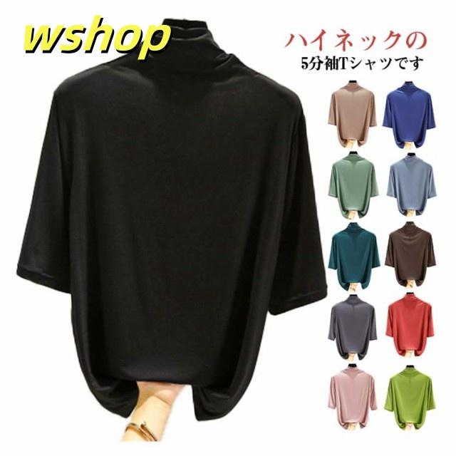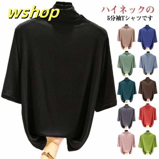 売れ筋アイテム 毎日使える便利品 レディース Tシャツ 5分袖 無地 大きいサイズ カジュアル シンプル 軽量仕様 【wshop カットソー 売上急増中 】ハイネックTシャツ 在庫わずか タートルネックハイネックカットソー 半袖 ハイネック 春 夏 薄手 お買い得プライス