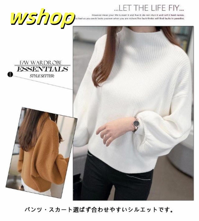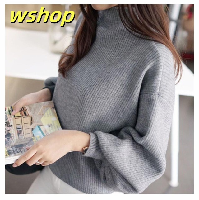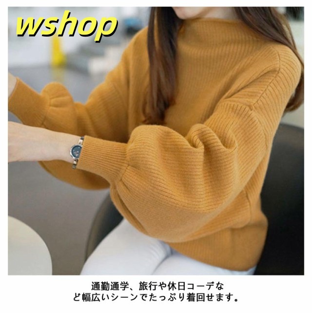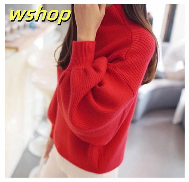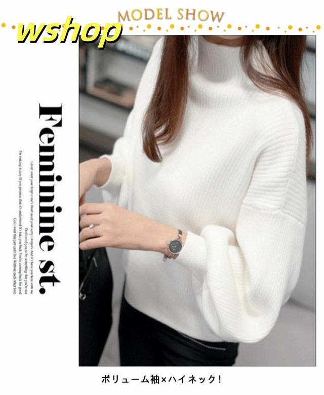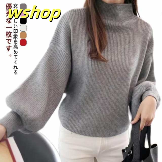 軽量仕様 売上急増中 長袖 M 3XL スリム ハイネック 40代 L きれいめ レディース ニットセーター 50代 トップス XL 30代 】バルーン袖 セーター ニット 2XL 【wshop リブ ぽわん袖 バルーンスリーブ 大きいサイズ 韓国ファッション 在庫わずか