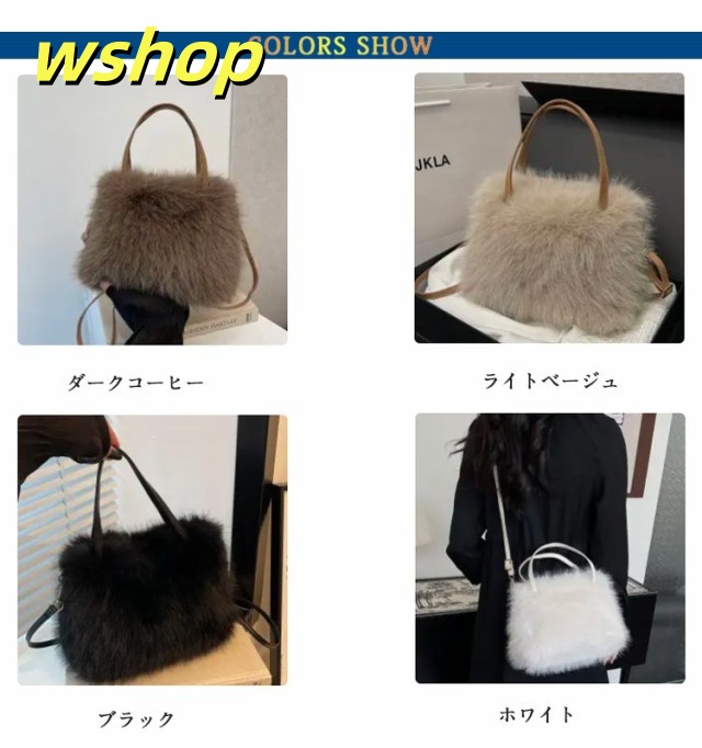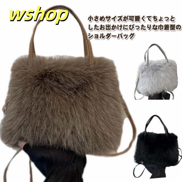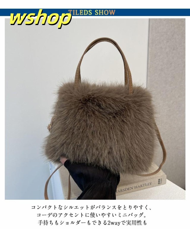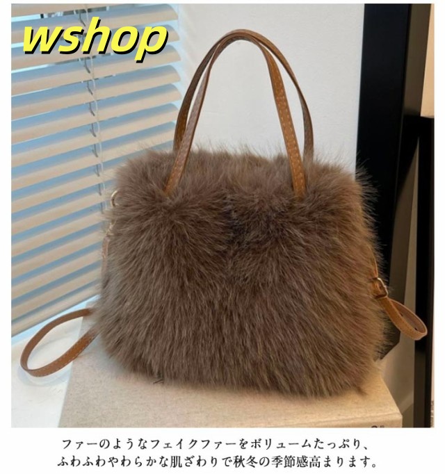 【wshop 】レディース 2way トート 斜めがけ ショルダーバッグ トートバッグ 軽量 軽い エコファー ファーバッグ ミニバッグ 小さめ ファーバック バッグ フェイクファー 大容量 斜めがけバッグ ハンドバッグ ミニショルダー かわいい おしゃれ クリスマス プレゼント
