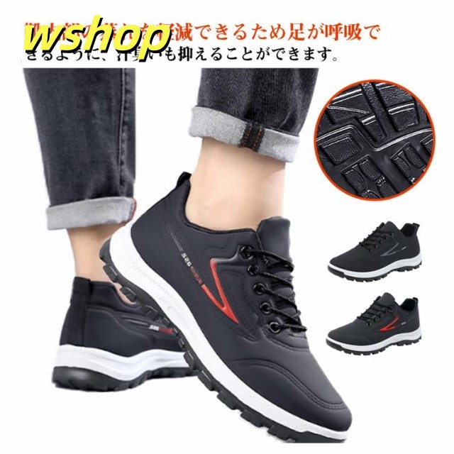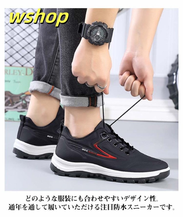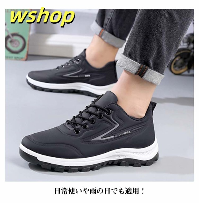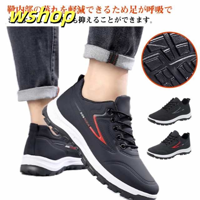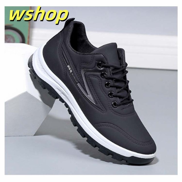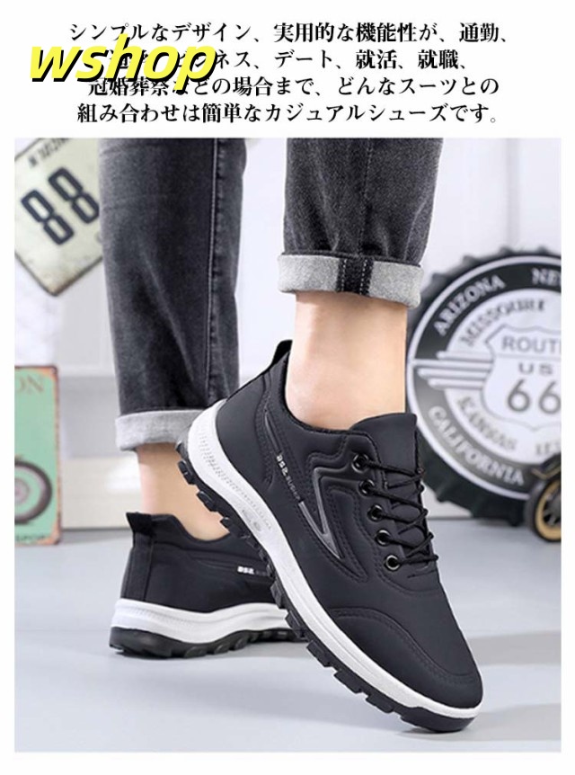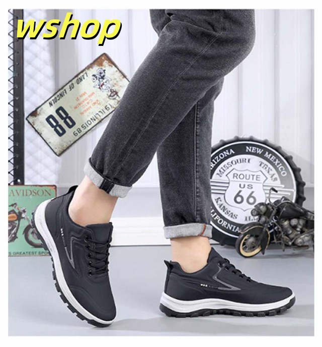 【wshop 】スニーカー 革 カジュアルシューズ スニーカー 幅広 スニーカー 撥水スニーカー 運動靴 カジュアルスニーカー 防水 防滑 スポーツ 黒 ビジネス レースアップ 軽量 メンズ 靴 紳士靴 合皮 ウォーキングシューズ ランニング ゴルフ 歩きやすい 雨対策 通勤 通学