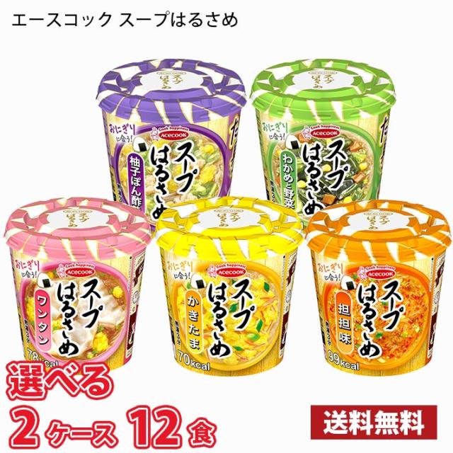 【選べる2ケース】エースコック スープはるさめ 6食×2箱 合計12食 送料無料(北海道は別途700円かかります。沖縄配送不可) / はるさめ ワンタン かきたま 担担 柚子ぽん酢 わかめ 野菜