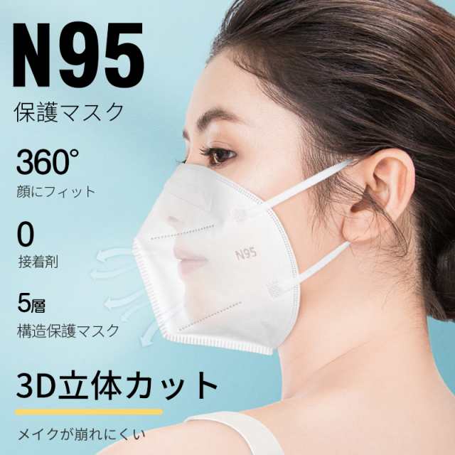 【50枚】N95マスク n95 マスク 不織布 フィルターマスク 3D 立体 5層 ウイルス マスク 個別包装 mask 防塵マスク 花粉対策 耳が痛くならない 使い捨て 通気性 PM2.5対策 大人用 女性 男性 子供 吸しやすい 息苦しくない