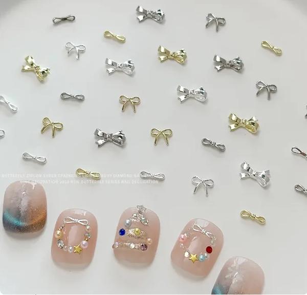 30 個シンプルゴールドシルバーツイストリボン弓光沢のある金属合金ネイルアート装飾マニキュアデザインパーツ用品チャーム