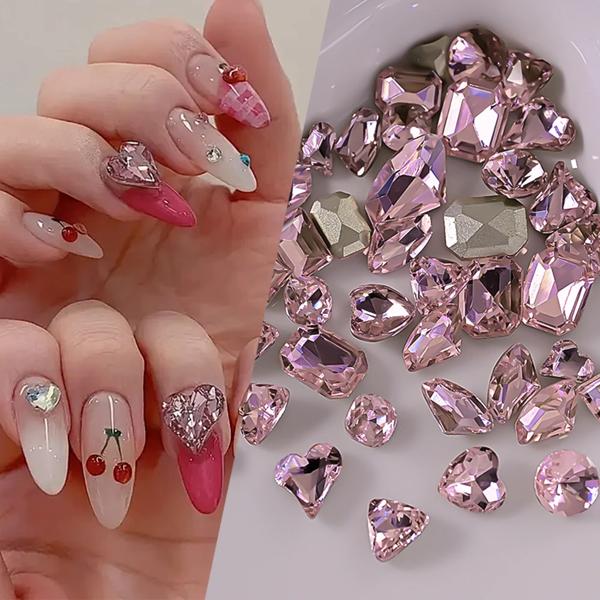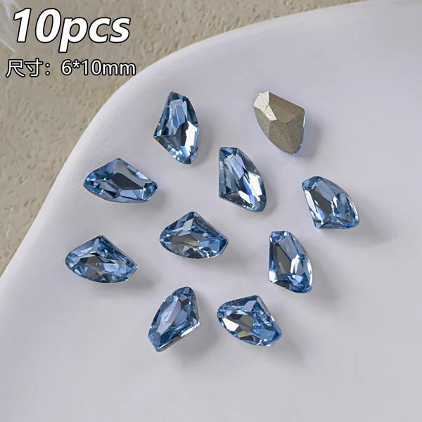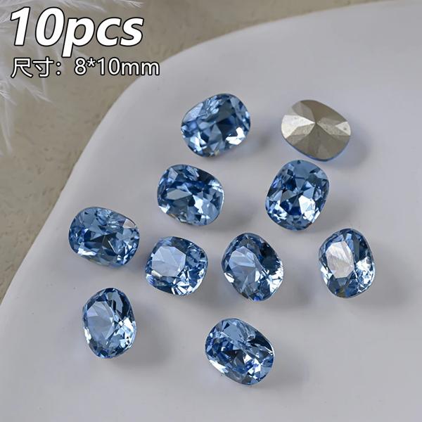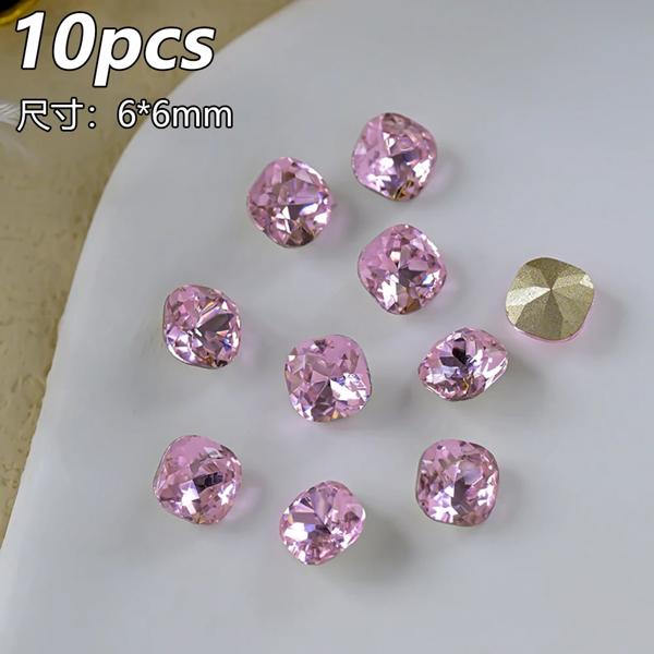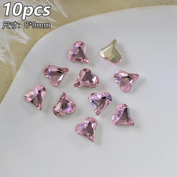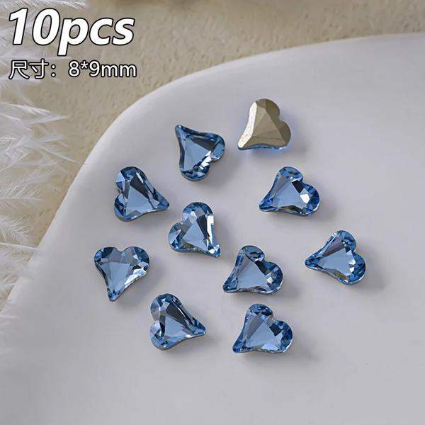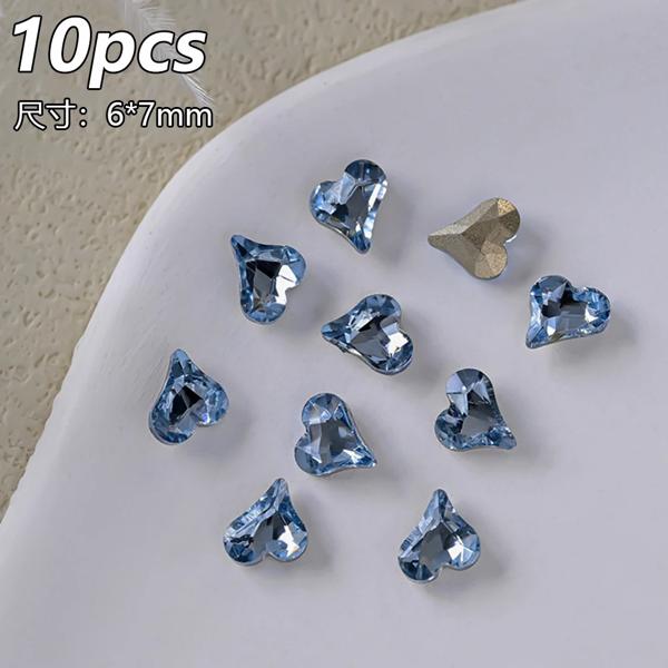 10 個透明ピンクブルークリスタルラインストーン高級スクエアハートネイルアートラインストーン宝石キラキラガラスダイヤモンドネイルチャーム