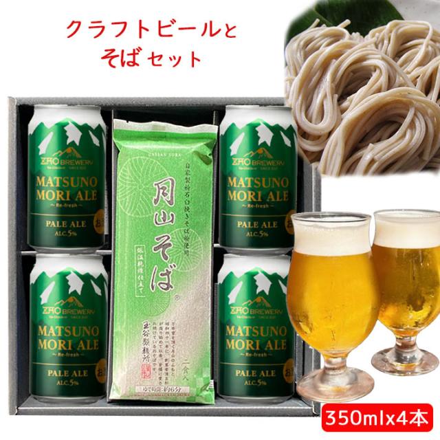 お歳暮 冬ギフト そばと酒 山形 ビールとそばセット 350mlx4本( 蔵王ブルワリー松の杜エール350ml4本x月山そば3袋) 3000円台 晩酌セット